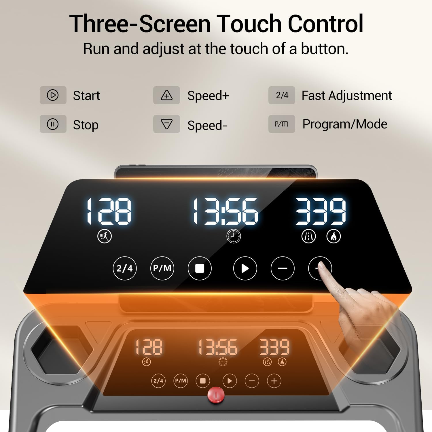 3-Screen Display & Foldable Design: This treadmill with handles features a triple display that shows time, speed, distance, and calories burned in real time and allows you to improve and adjust your workout program at any time with buttons on the display. This foldable treadmill has a built-in water cup holder and tablet/cell phone holder, making it easy for users to place their belongings while working out