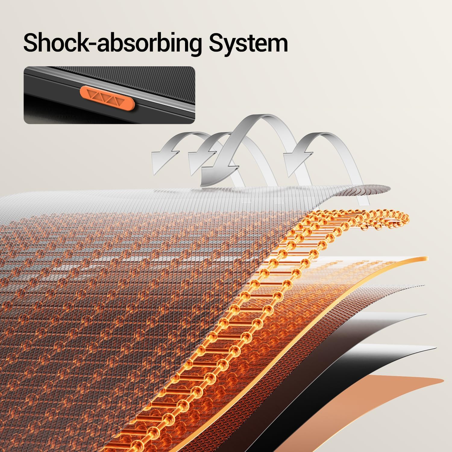 Spacious Running Belt: 38.2“ x 15.2” Running belt is equipped with 6 layers of non-slip surface, cushioning rubber pads and silicone shock absorbers, the running belt will not shift to ensure a smooth and comfortable run, absorbs shock generated during running, reduces impact on joints and muscles, extends the duration of the workout, and improves workout results
