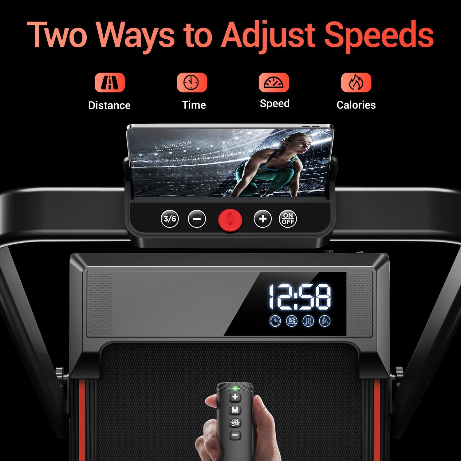 Intuitive Screen Display Design and Foldable Design: This incline treadmill comes with a display that shows time, speed, distance and calories burned in real time. This compact treadmill can be folded for storage and put into the bottom space of sofas without taking up space