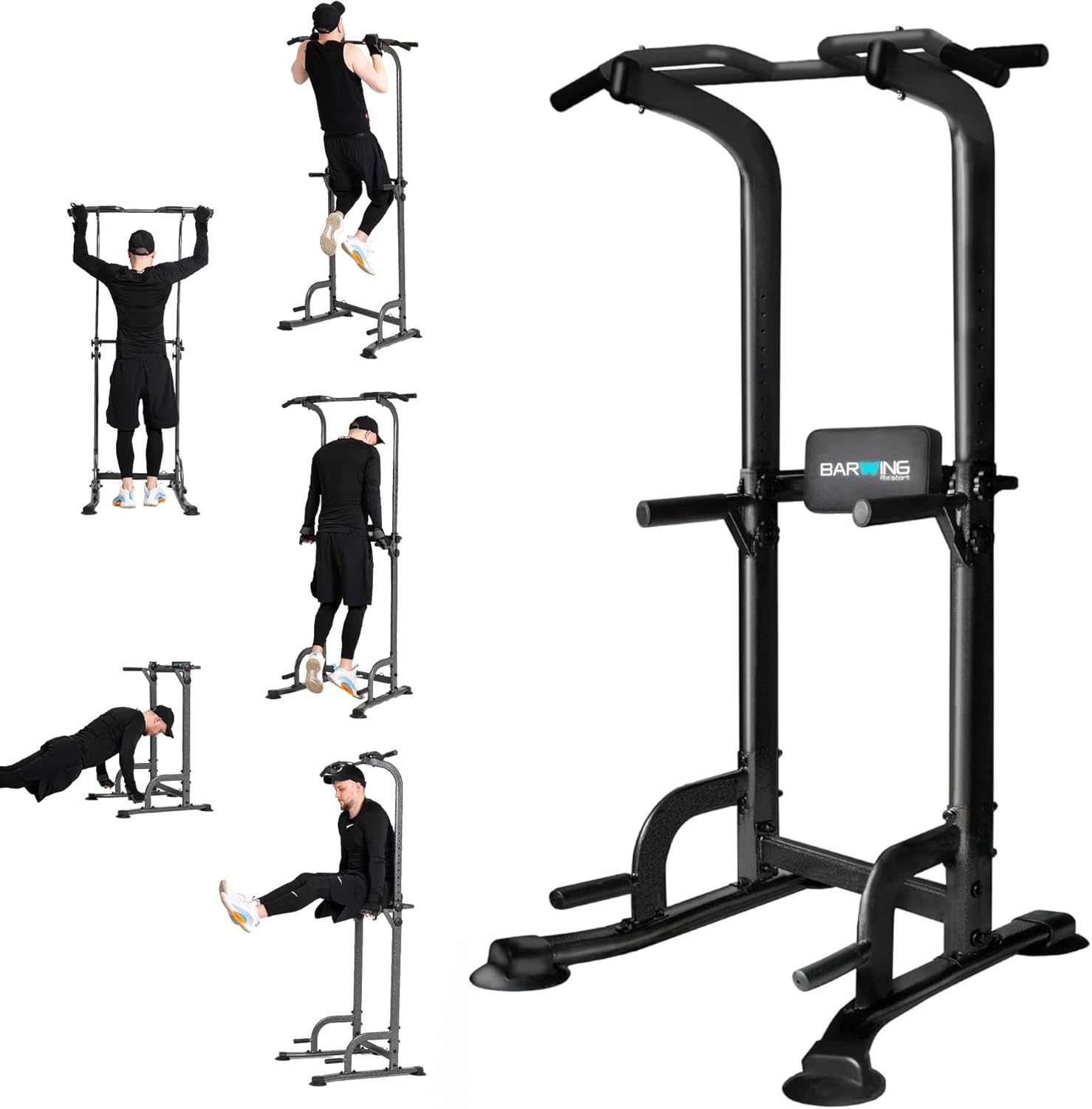 Specification: BARWING Pull Up Bar Station, Power Tower, Dip Station with 3D Backrest, Multi-Function Strength Training Stand Rack, Adjustable Height Dip Bar for Home Gym Workout Stand Fitness Exercise Equipment