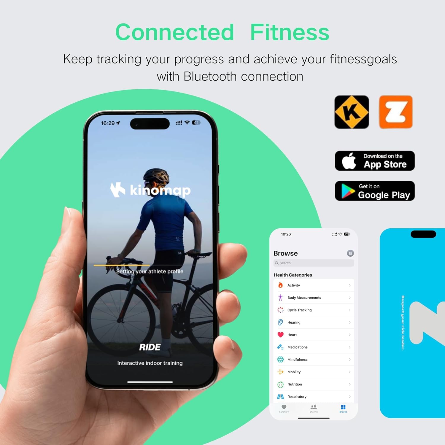 【2025 EXERCISE BIKE WITH BLUETOOTH & FITNESS APP】 A stationary connected via Bluetooth, paired with Kinomap or Zwift software, brings a new experience to your home fitness. The software provides diverse cycling scenarios, records training data, and elevate your training to the next level.