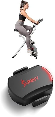 Bundle of Sunny Health & Fitness Comfort XL Ultra Cushioned Seat Folding Exercise Bike with Device Holder SF-B2989 + Sunny Health & Fitness Exercise Cycling 2-in-1 Advanced Cadence Sensor CB110
