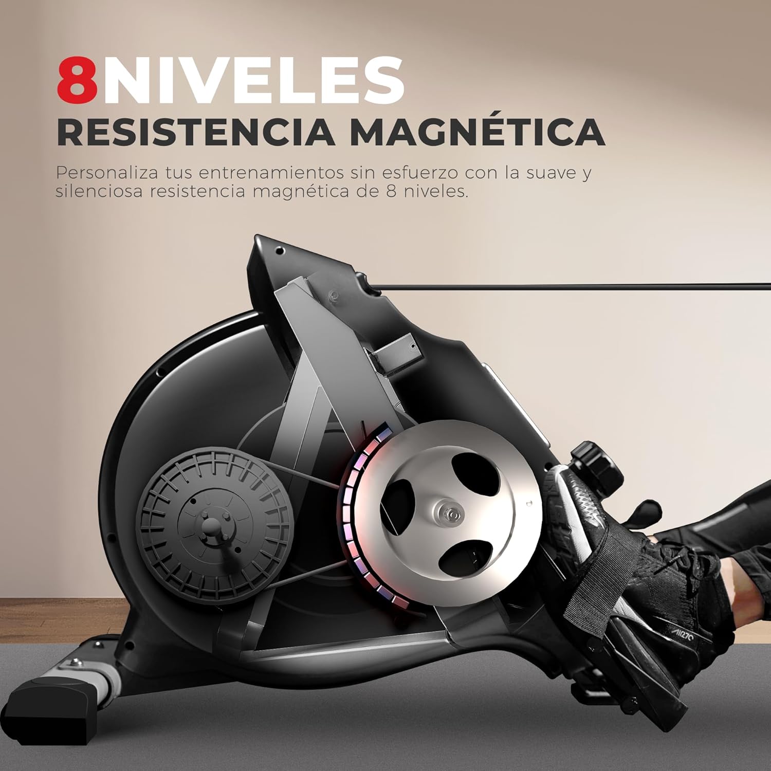 ROWING MACHINE: With a simple twist, you can increase or decrease the 8 levels of magnetic resistance, so your workout can remain challenging and effective throughout your fitness journey.
