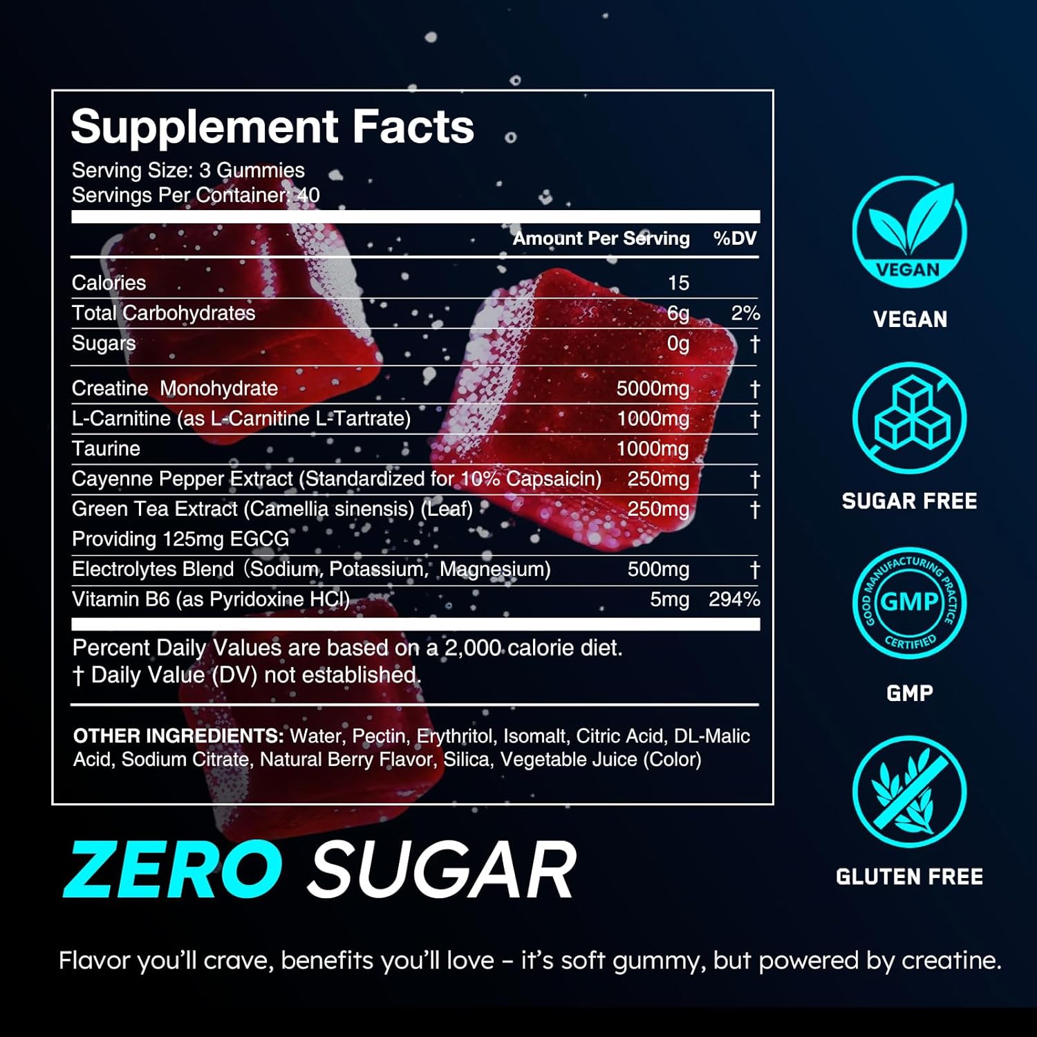 PREMIUM NATURAL INGREDIENTS – Each serving is packed with 5g of Creatine Monohydrate with taurine, l-carnitine, cayenne pepper, vitamin B6, and green tea extract. We’ve condensed all the benefits of traditional creatine supplements into a tasty, convenient form. The on-the-go ease of these gummies allow you to fuel your muscles anytime. Unleash your inner power and get your dose of creatine in just a few natural, delicious flavored creatine