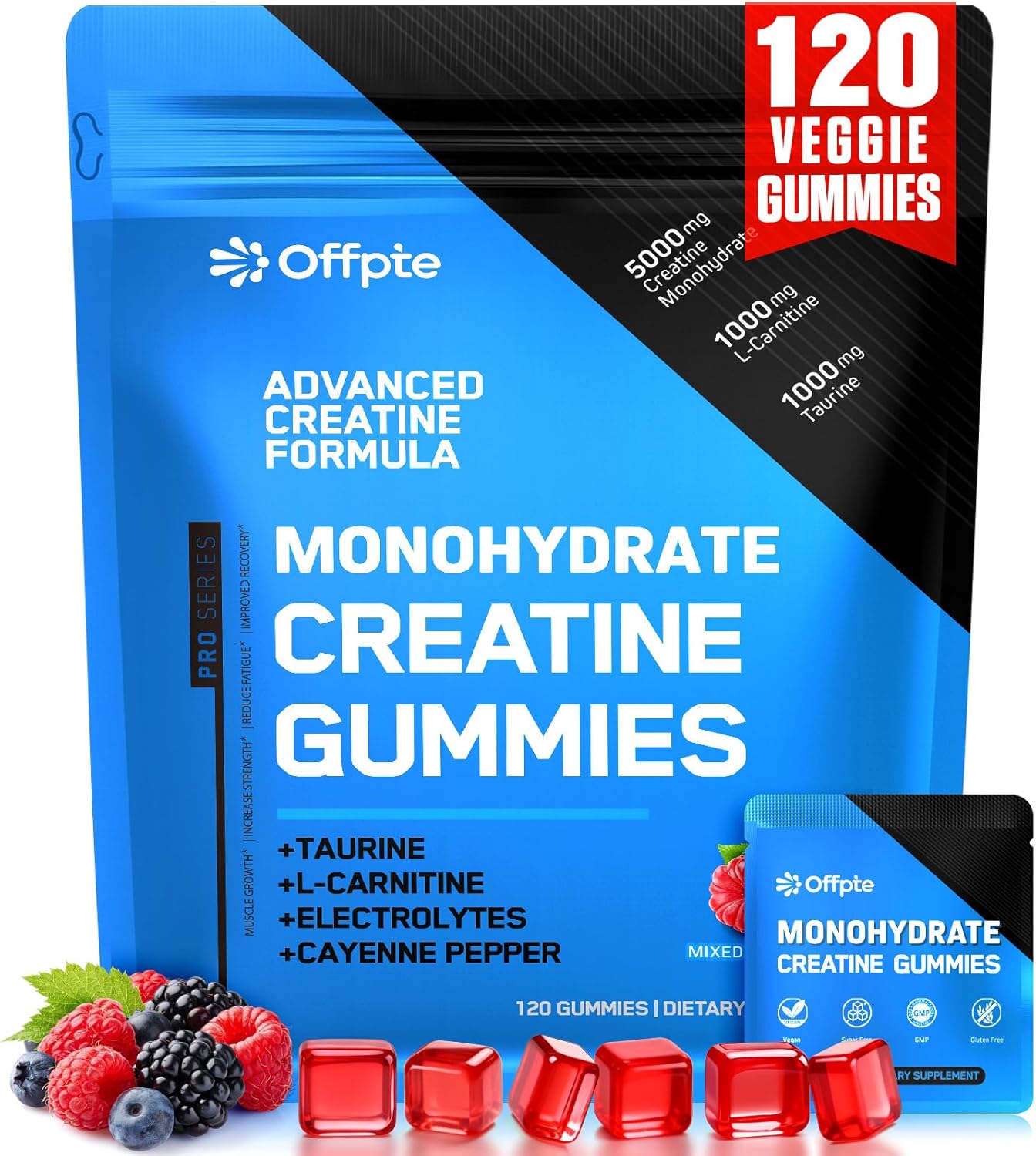 Creatine Monohydrate Gummies 8000mg for Women & Men,5g Creatine with Taurine,L-Carnitine,Electrolytes,Cayenne Pepper for Energy, Muscle & Focus | Vegan, Sugar Free,120 Gummies Blue