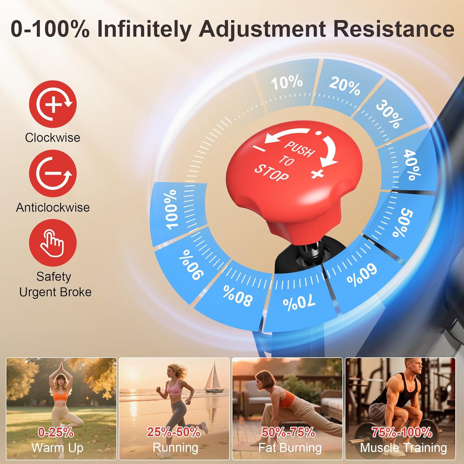 5️⃣ Fully Adjustable Comfort Fit—-Customize your perfect riding position with a 4-way adjustable seat and handlebars. Includes non-slip pedals, leveling knobs, and a built-in water bottle holder. Compact yet sturdy, it’s ideal for home gyms, offices, or apartments. Move it easily with the built-in transport wheels.