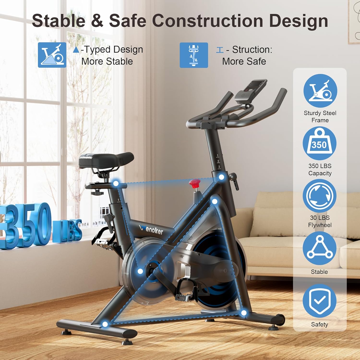 Steel skeleton | Supports 350 pounds without moving like a mountain, stable like rock—- Reinforced steel triangle frame with anti-slip pedals and stabilizers provides rock-solid support for every sprint, climb, or long ride. Confidence with every push