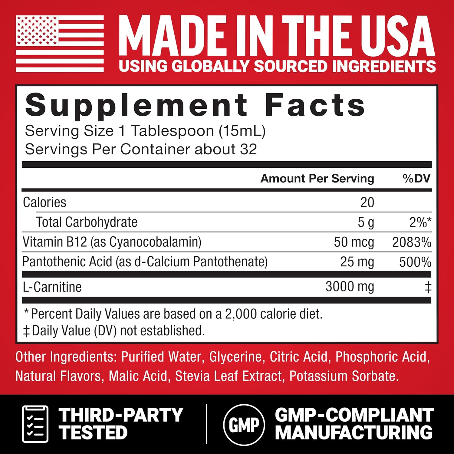 HELP TURN FAT INTO ENERGY: Each serving of this maximum-strength 3000mg liquid L-carnitine formula helps your body convert stored fat into usable energy to support workouts, recovery, and daily activity.