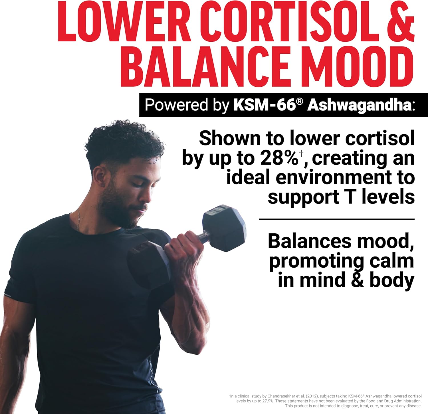 LOWER CORTISOL TO PRIME THE BODY FOR T: KSM-66 Ashwagandha is also shown to help lower cortisol by up to 28%,** creating a better environment for supporting healthy T levels naturally.