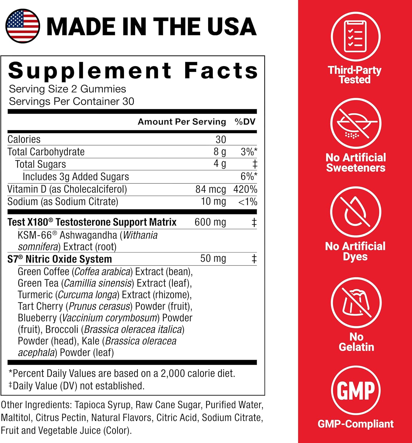 BOOST NITRIC OXIDE FOR MASSIVE PUMPS: These T-boosting gummies harness the power of S7, a premium blend of plant-based ingredients shown to increase nitric oxide production for improved blood flow, vascularity, and performance.