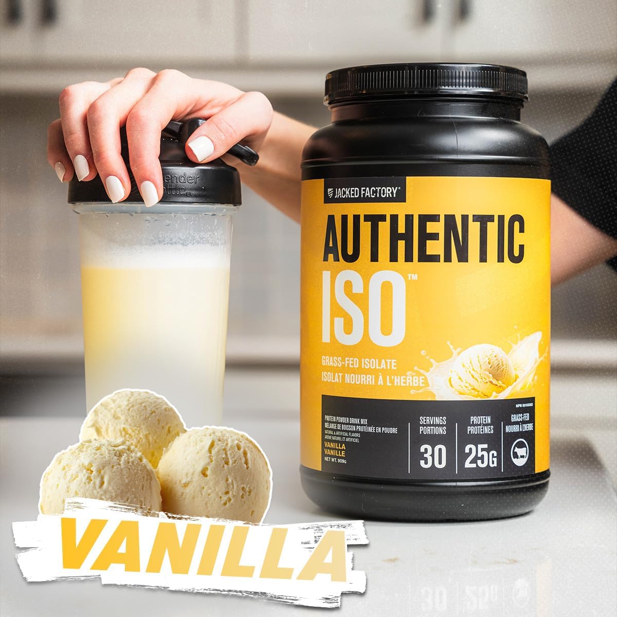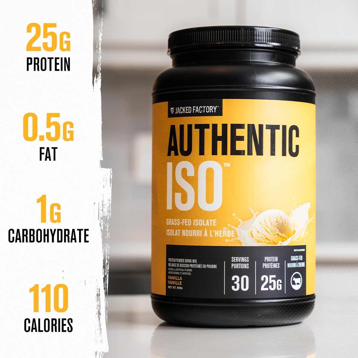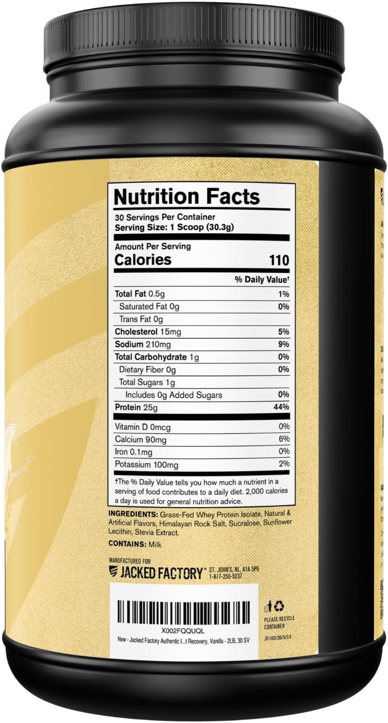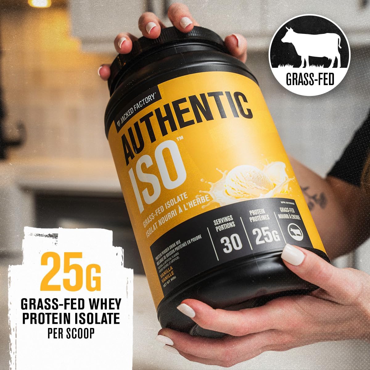 Jacked Factory Authentic ISO Whey Protein Isolate Powder – Low Carb, Non-GMO Muscle Building Protein w/No Fillers, Post Workout Recovery – 30 Servings, Vanilla