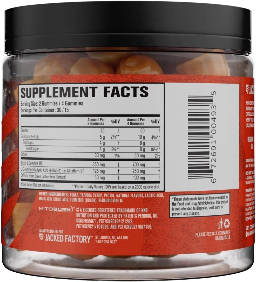 Be the first to review “Jacked Factory Burn-XT Weight Loss Gummies – Thermogenic Fat Burner & Appetite Suppressant Gummies with Acetyl-L-Carnitine HCL, MitoBurn, & Caffeine – 60 Gummies, Tangerine Sour”