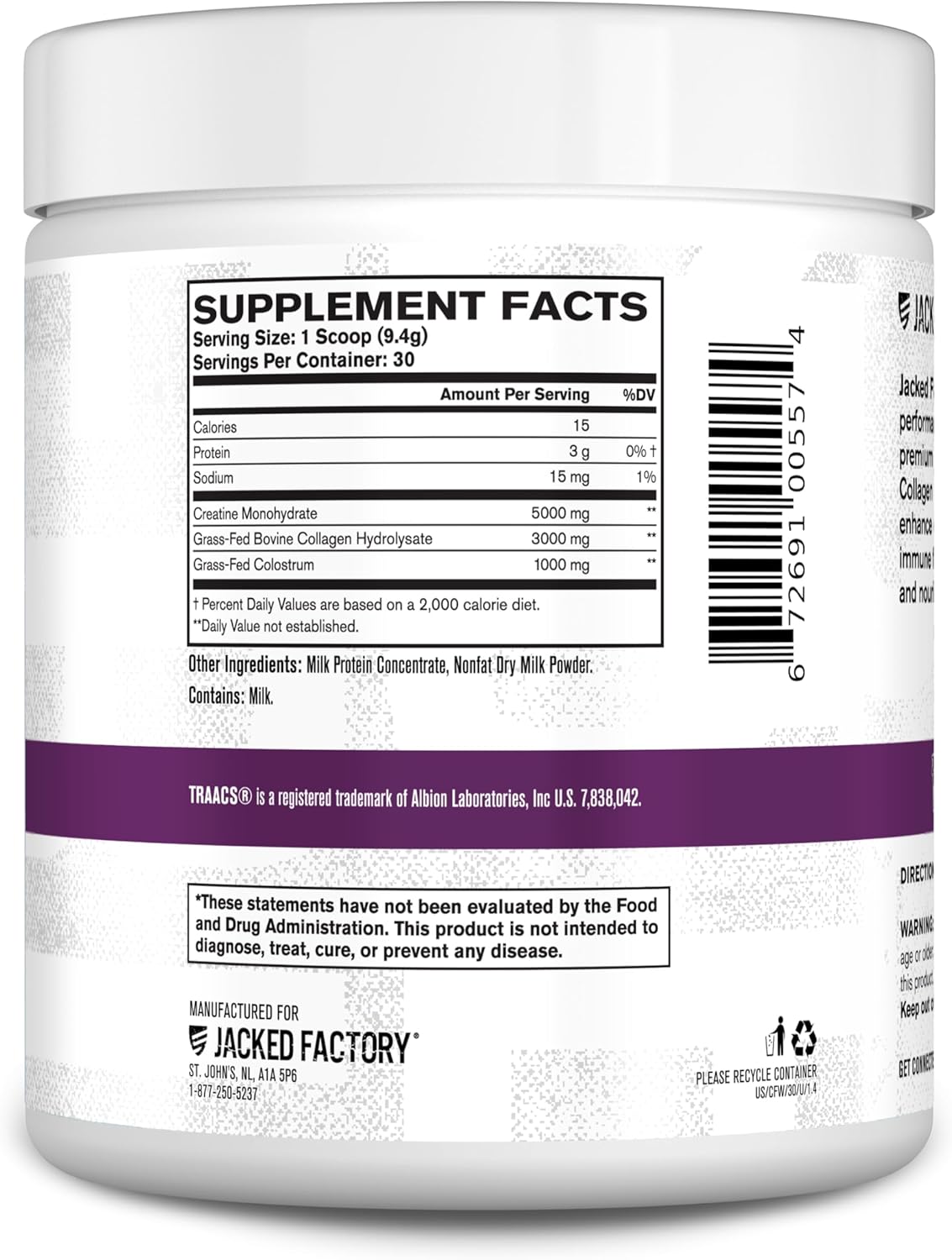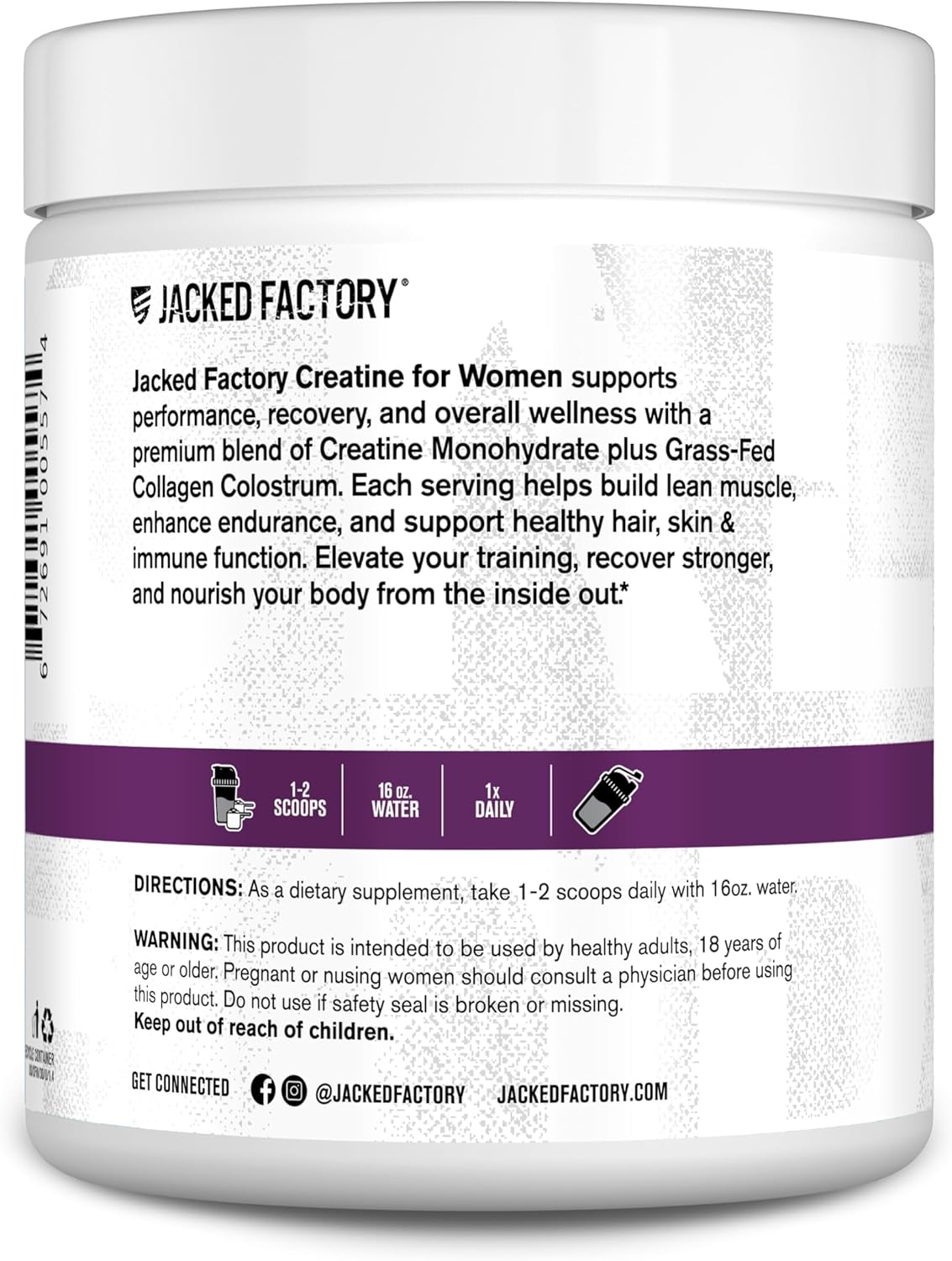 Jacked Factory Creatine for Women – Creatine Monohydrate with Collagen + Colostrum to Support Workout Performance, Lean Muscle Growth, Healthy Hair, Skin, & Nails – 30 Servings, Unflavored