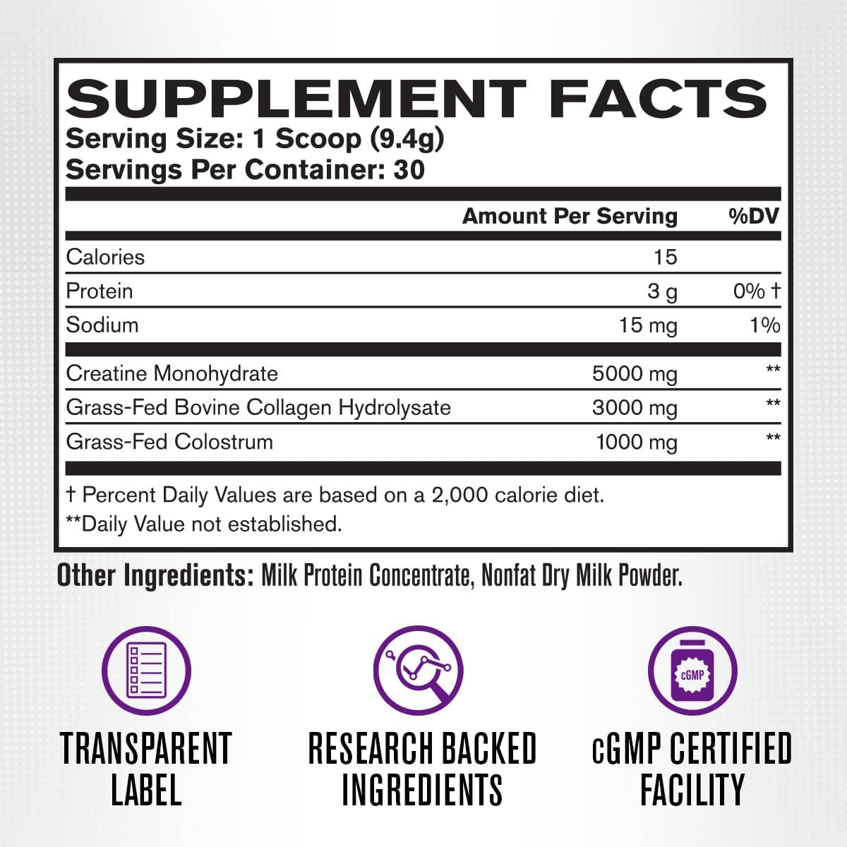 Immune & Gut Support with Colostrum: Each scoop delivers 1000mg of premium grass-fed colostrum—a nutrient-dense source of immunoglobulins and growth factors that help support immune health, digestion, and full-body wellness.