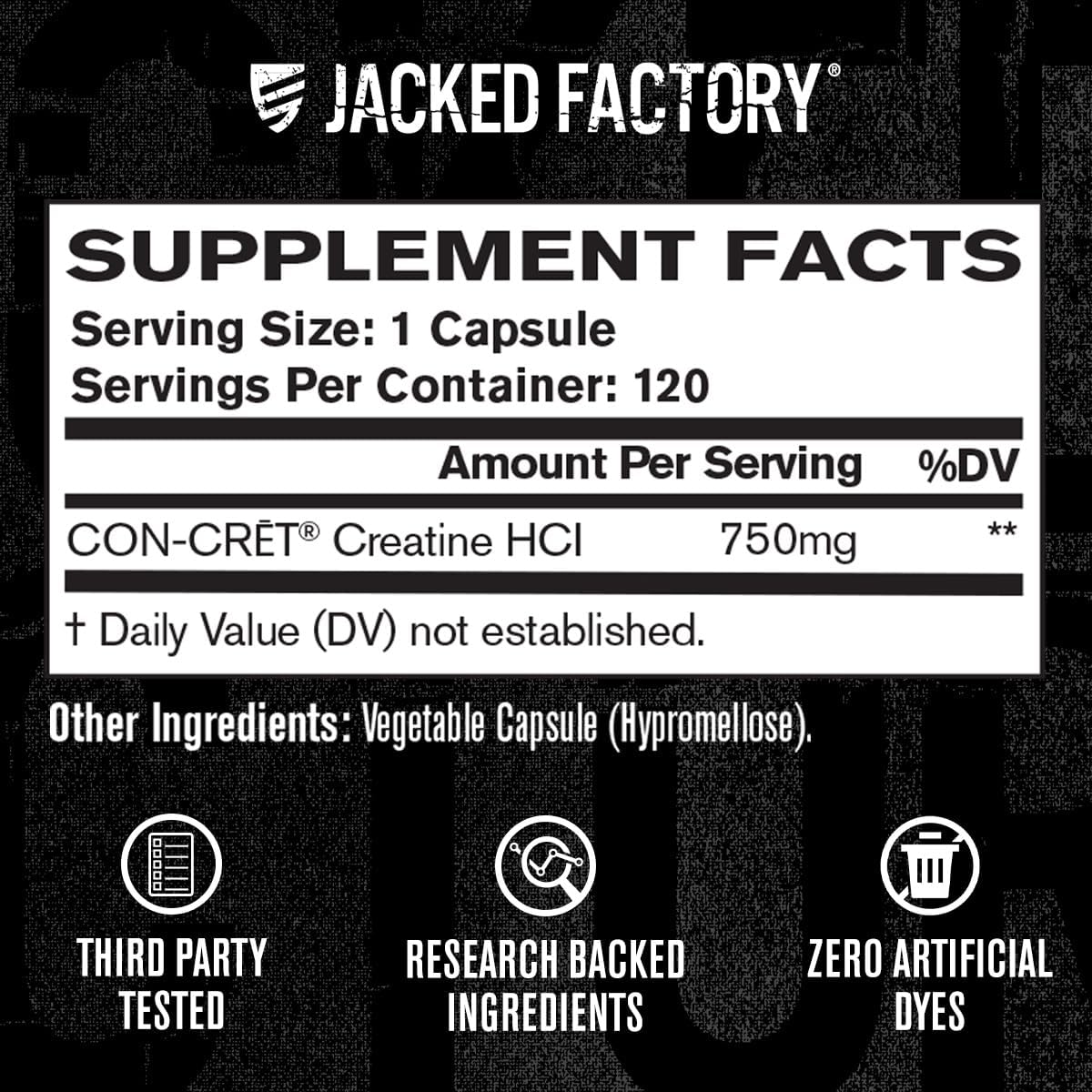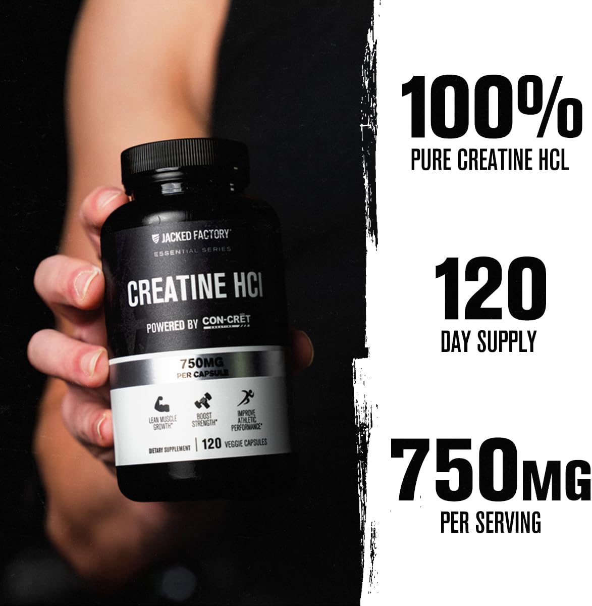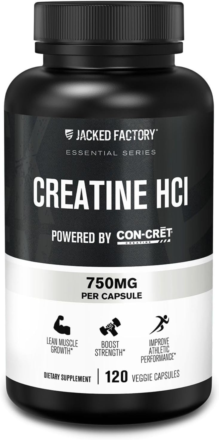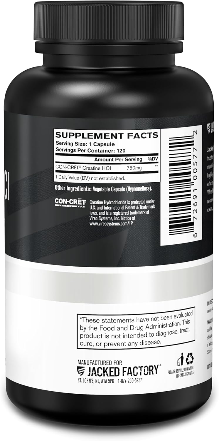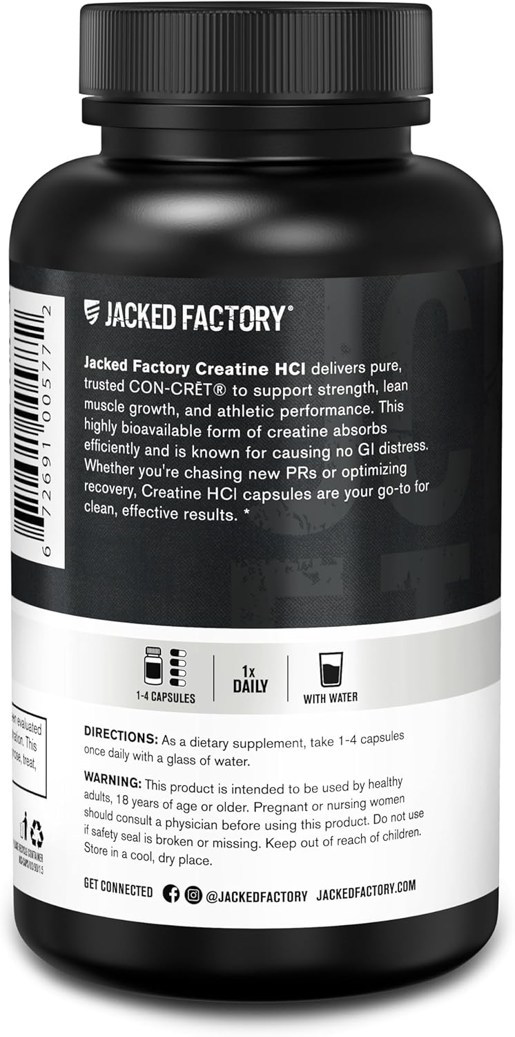 Jacked Factory Creatine HCl Capsules – CON CRET Creatine Pills 750mg – Lean Muscle Growth & Recovery, Boost Strength & Endurance, No Bloating or Cramps – 120 Capsules