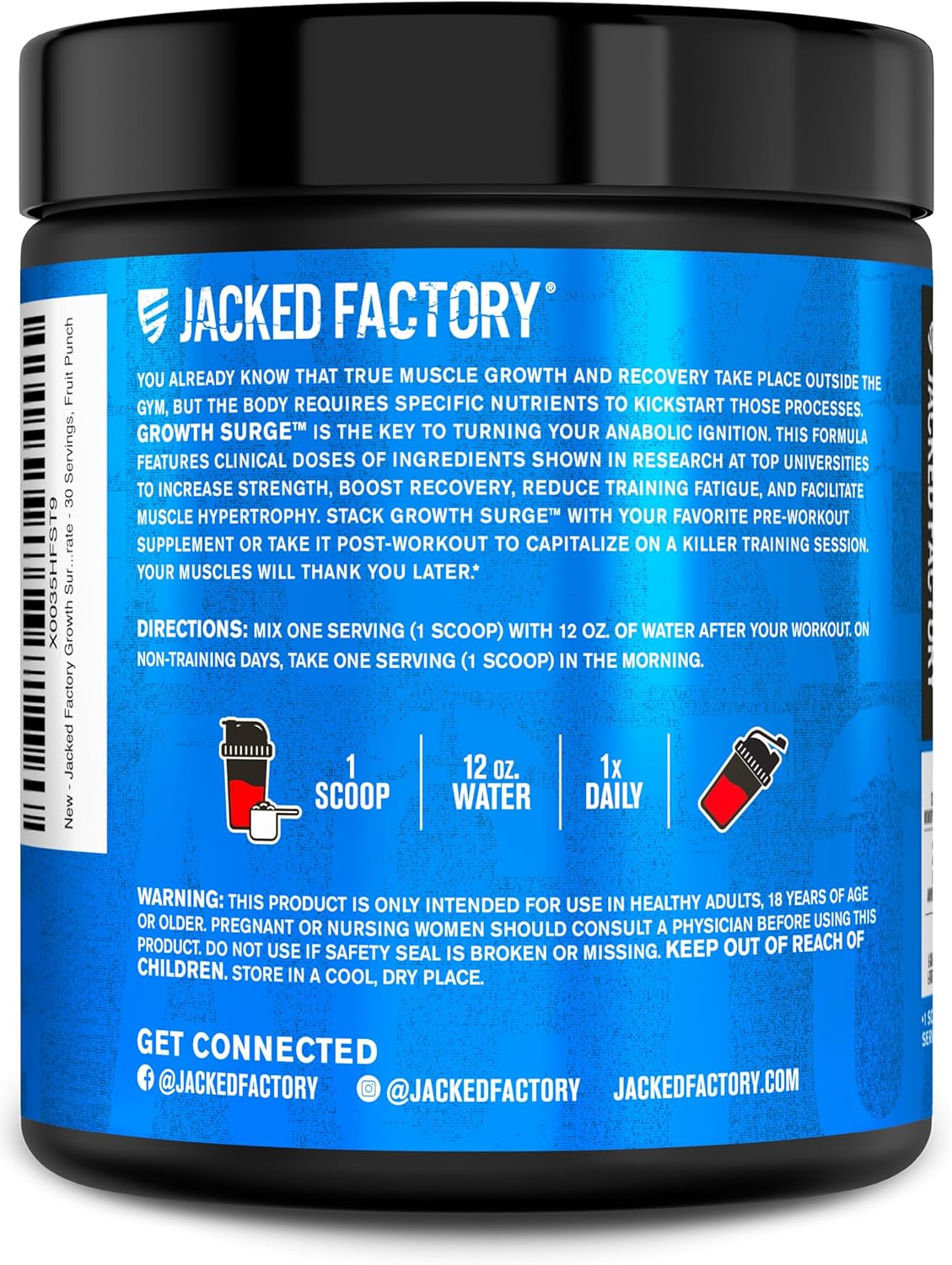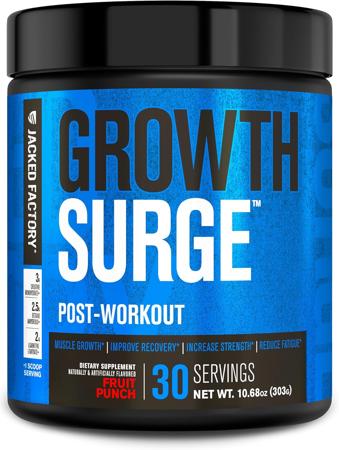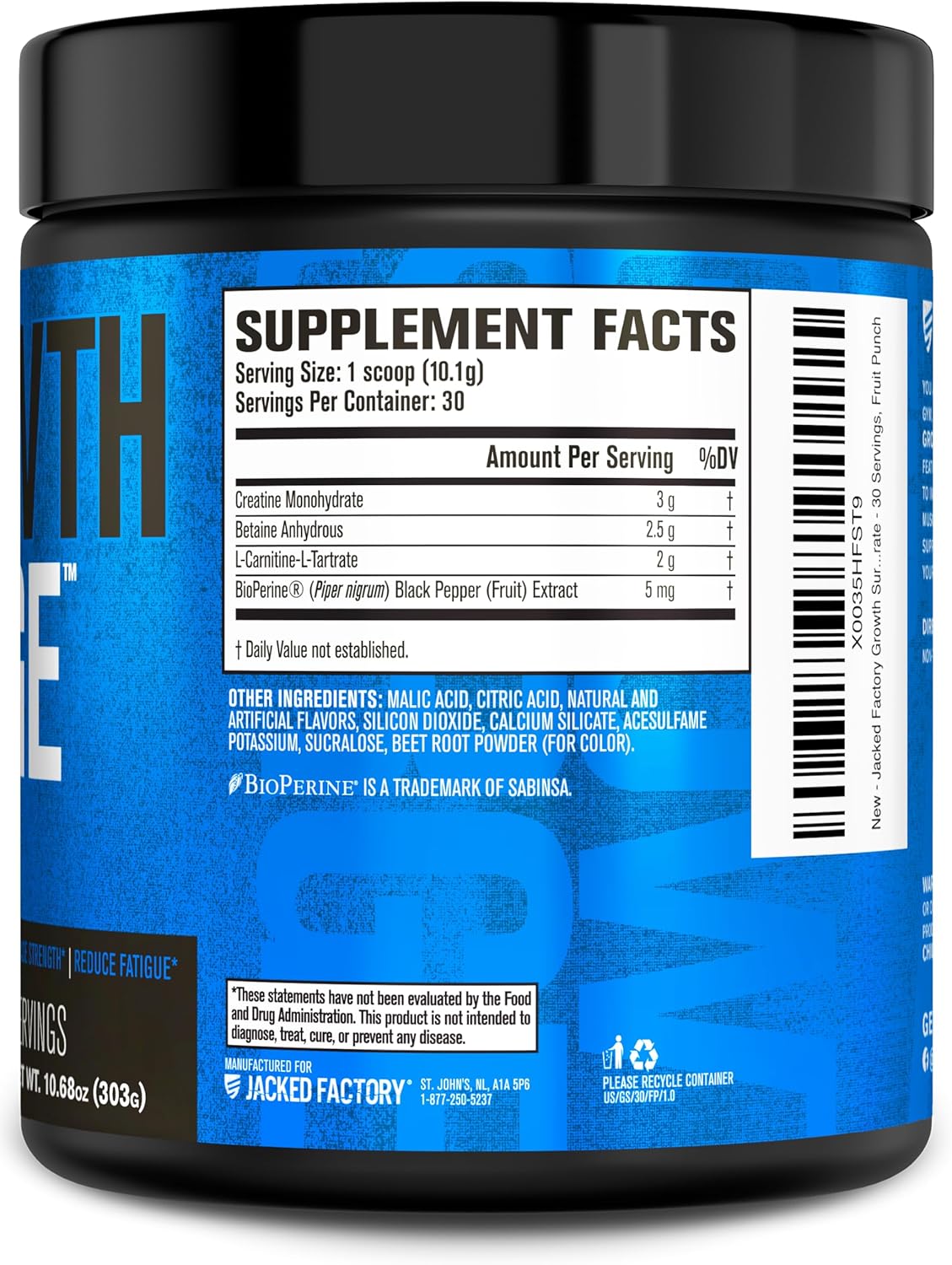 Jacked Factory Growth Surge Creatine Post Workout w/L-Carnitine – Daily Muscle Builder & Recovery Supplement with Creatine Monohydrate, Betaine, L-Carnitine L-Tartrate – 30 Servings, Fruit Punch