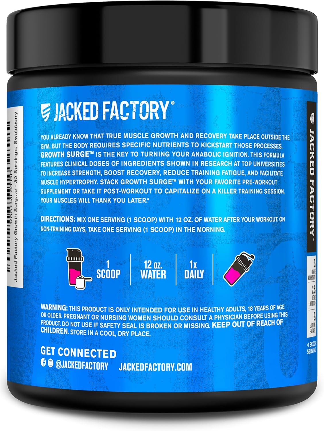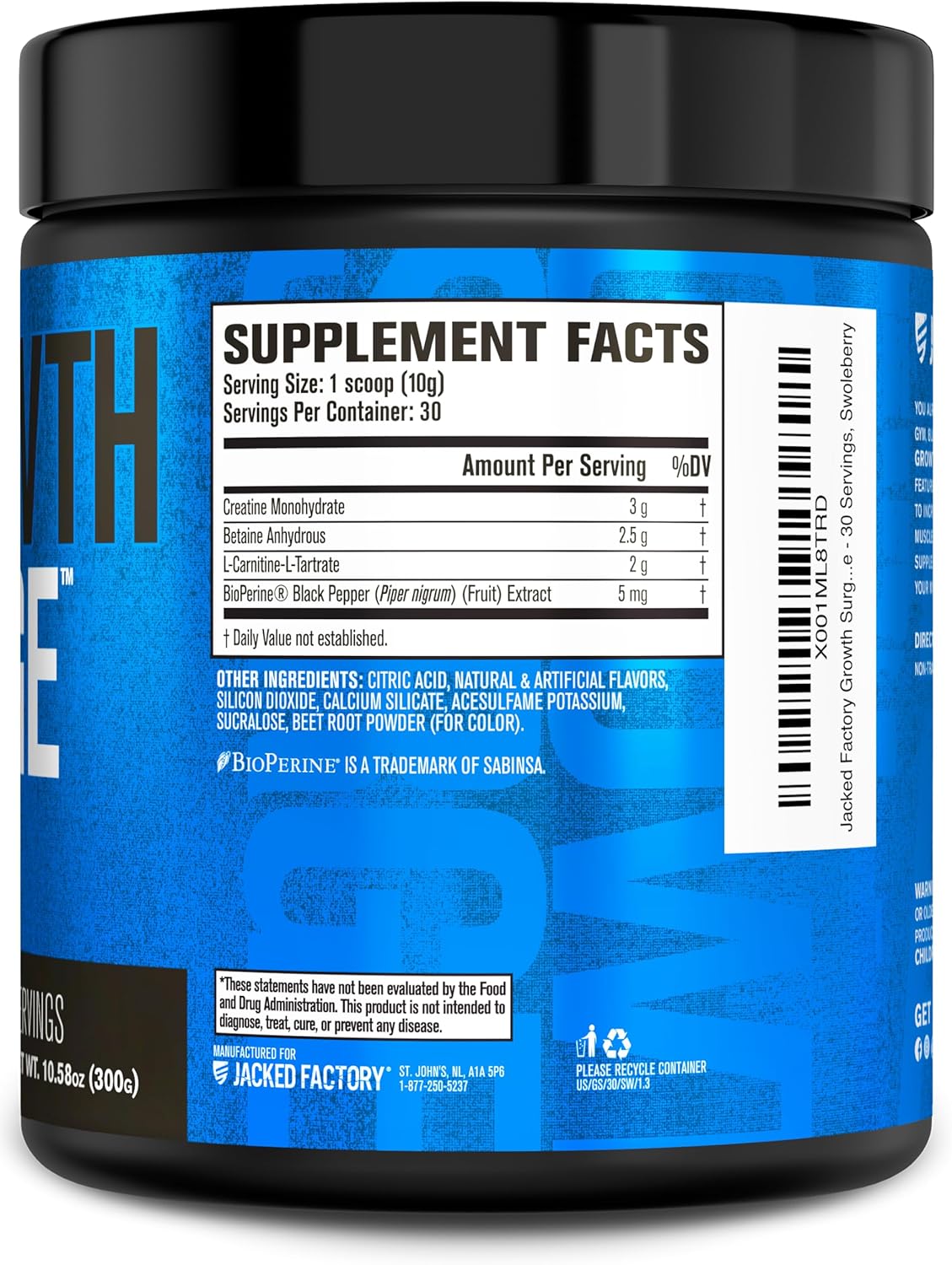 Jacked Factory Growth Surge Creatine Post Workout w/L-Carnitine – Daily Muscle Builder & Recovery Supplement with Creatine Monohydrate, Betaine, L-Carnitine L-Tartrate – 30 Servings, Swoleberry