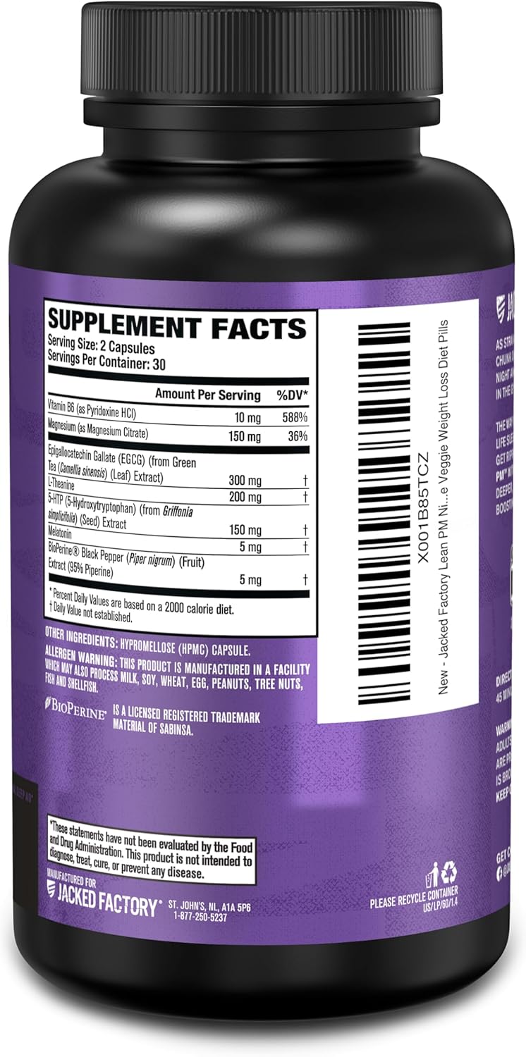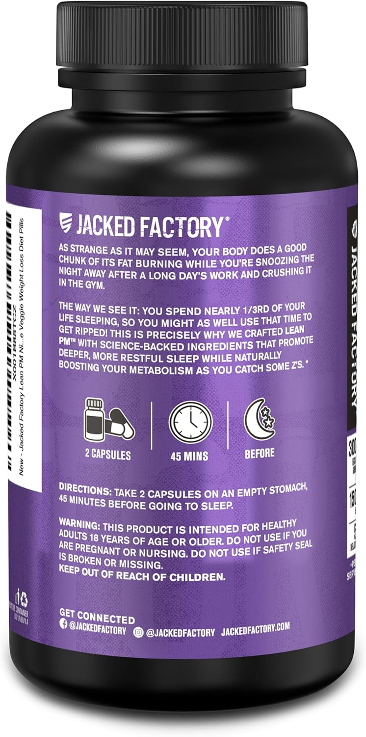 Jacked Factory Lean PM Night Time Fat Burner, Sleep Aid Supplement, & Appetite Suppressant for Men and Women – 60 Stimulant-Free Veggie Weight Loss Diet Pills