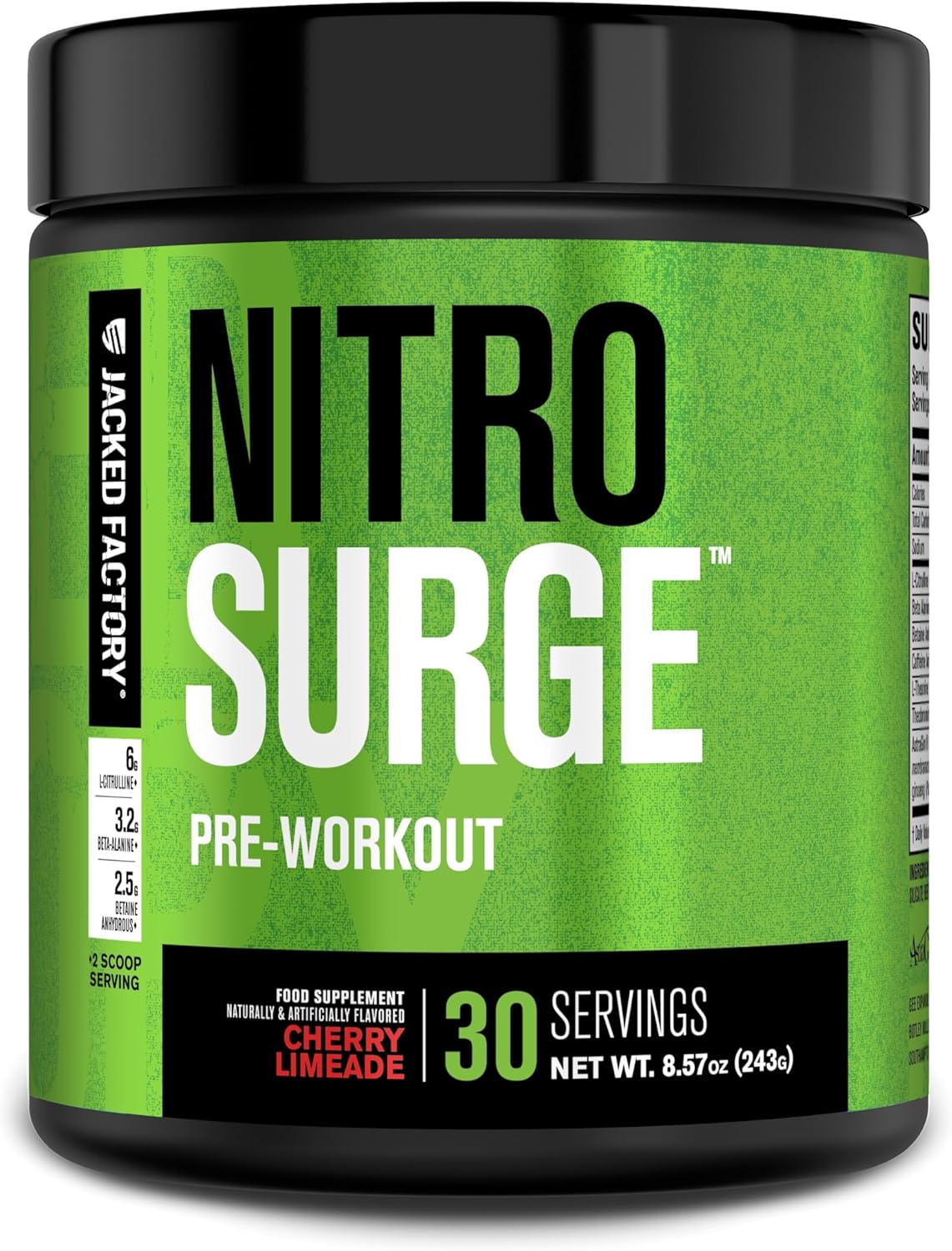 Jacked Factory NITROSURGE Pre Workout Supplement – Endless Energy, Instant Strength Gains, Clear Focus, Intense Pumps – NO Booster & Preworkout Powder with Beta Alanine – 30 Servings, Cherry Limeade