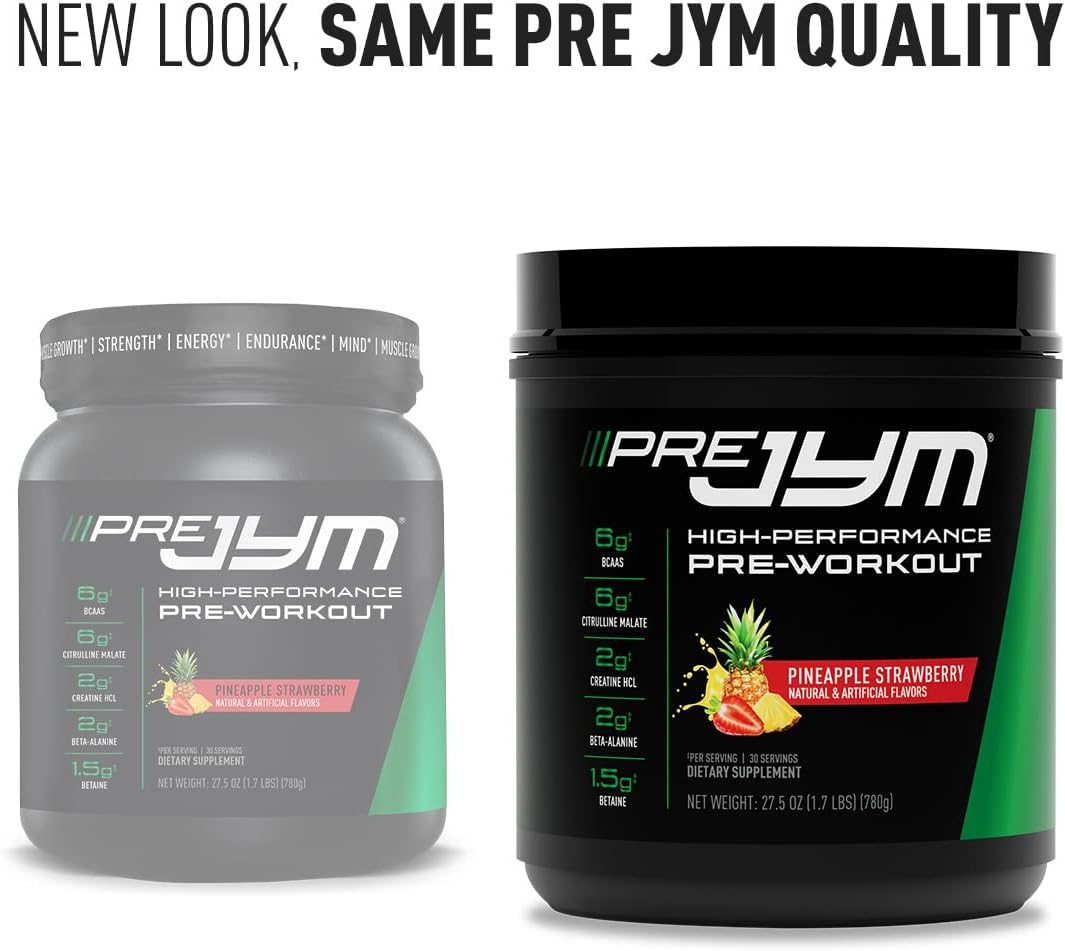 JYM Supplement Science Pre JYM Pineapple Strawberry Pre Workout Powder for Men & Women, BCAAs, Nootropics, Creatine HCI, Citrulline, Beta-Alanine, Betaine, Taurine, Huperzine, 30 Servings