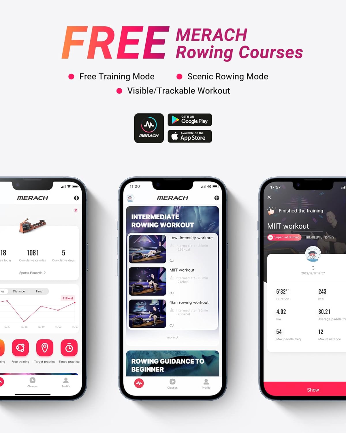 Dual Resistance System Rower: This rower is a combination of water and magnetic resistance rowing machines and has a real paddling experience at the same time. It has 16 levels of precise electromagnetic resistance adjustment that improve the upper limit of resistance and increase the fat-burning effect. Lifetime MERACH Membership: By downloading th