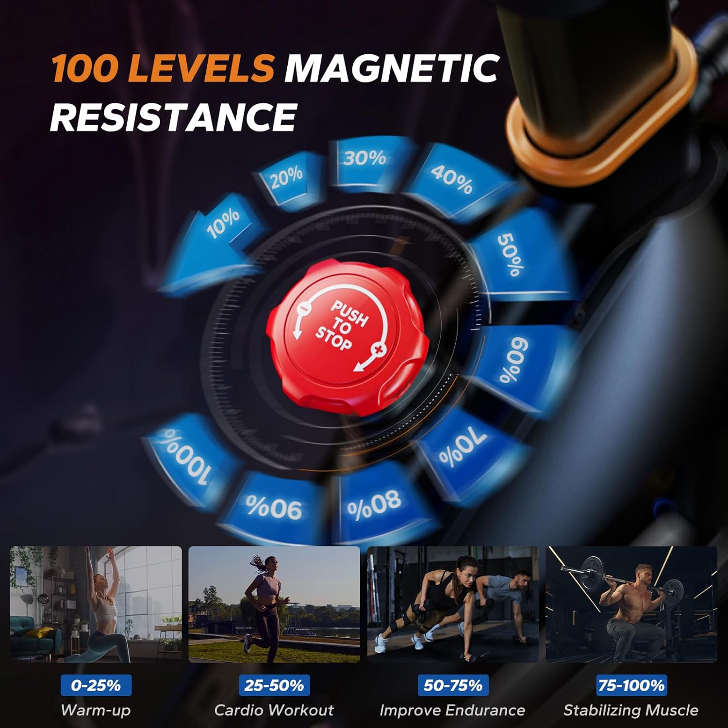 INFINITE RESISTANCE FOR YOUR WORKOUTS: You can adjust resistance to any level, from light rides to intense climbs on this indoor exercise bike. This 0-100% resistance variation caters to the daily workout needs of individuals across different fitness stages. **Please note, you’ll only see 16 resistance levels displayed on the Merach app