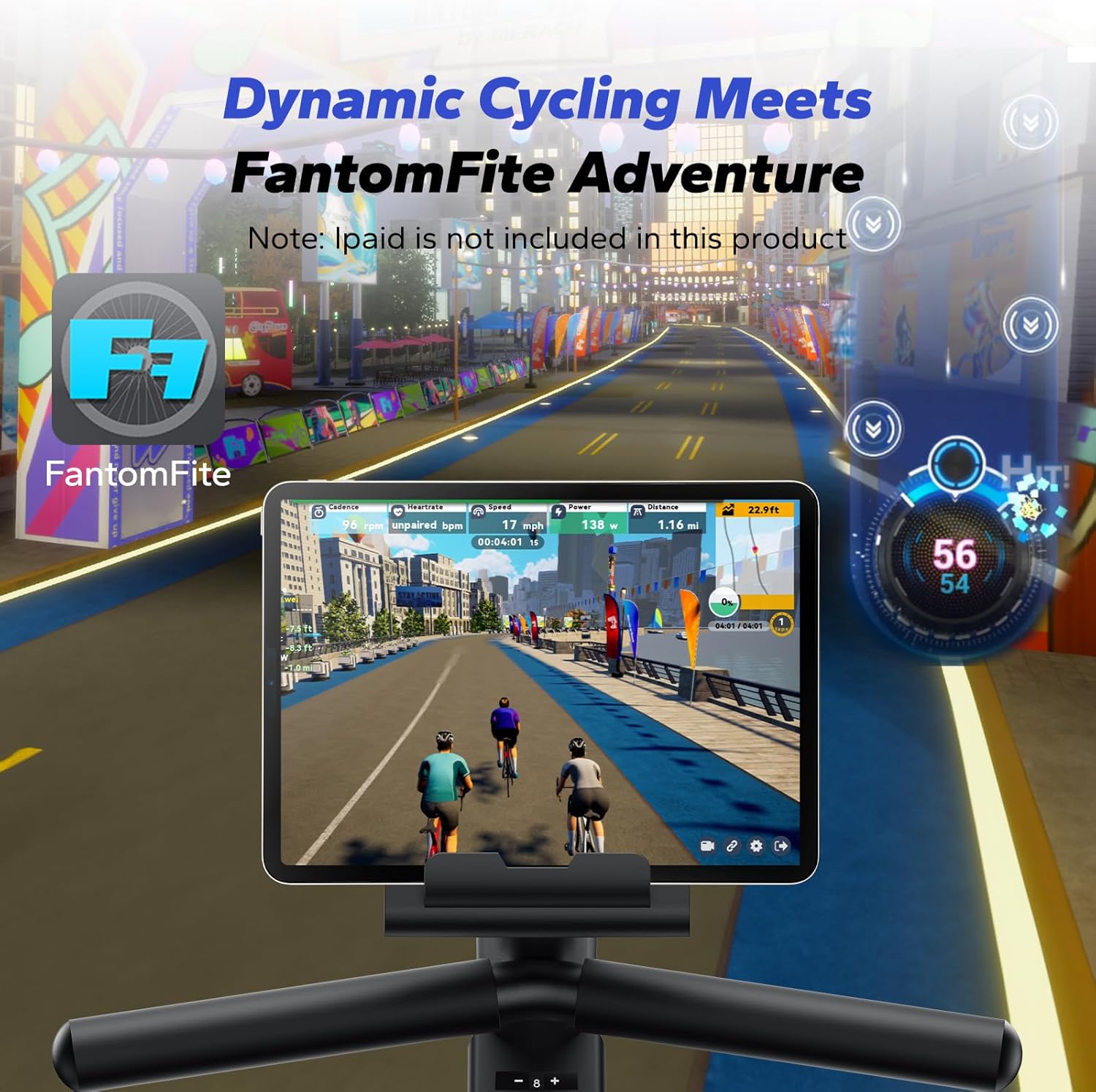 【 MERACH Self-Developed App 】 Syncing with your Bluetooth exercise bike. Track real-time stats like distance, time, calories, and heart rate. Plus, the FantomFite app turns cycling into a fun game experience!