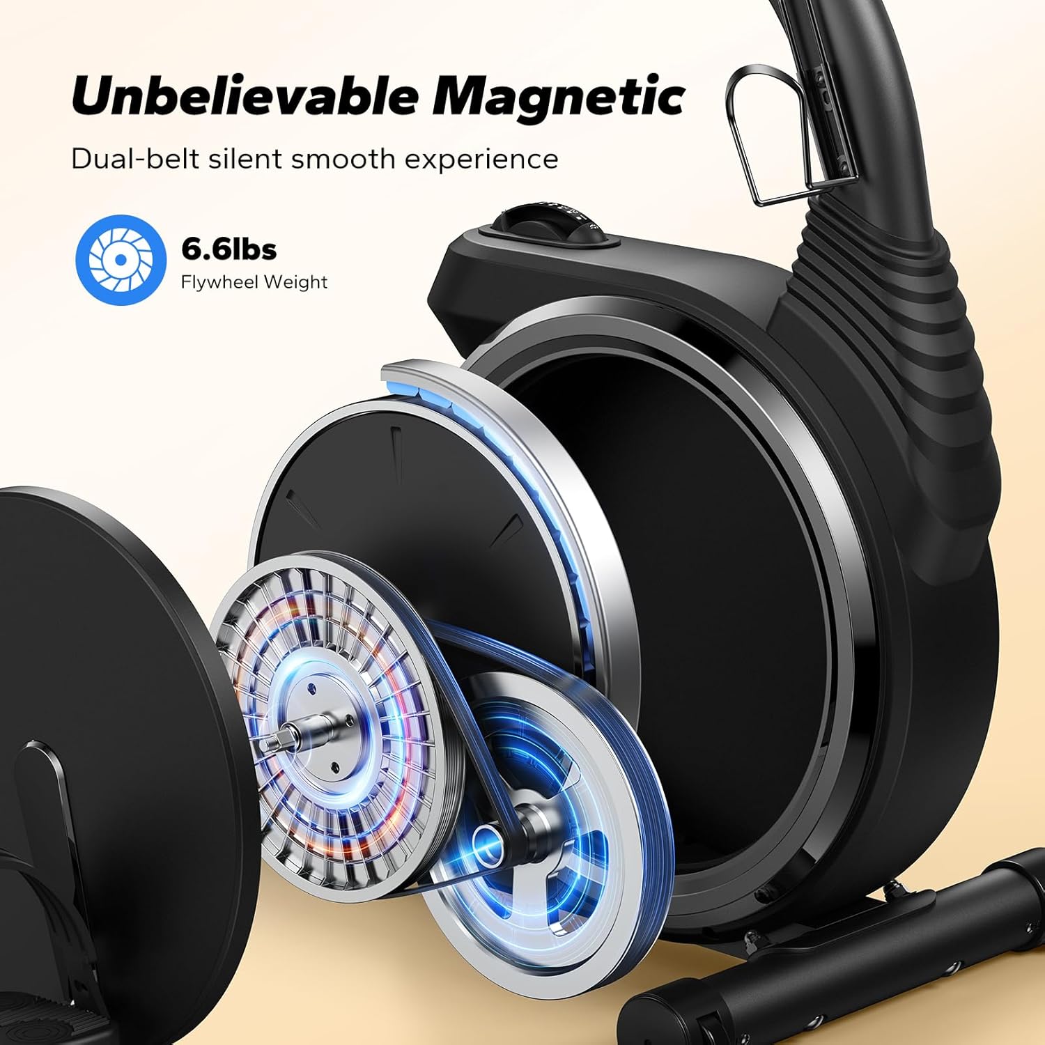 【 Silent Dual-Belt Drive System 】 Smooth, Silent Operation – Featuring a high-speed, high-inertia design and a 6.6lb perimeter-weighted flywheel. Whether you’re in a shared space or aiming to be considerate to neighbors, our recumbent stationary bike is the ideal choice for noise-free, family-friendly exercise.