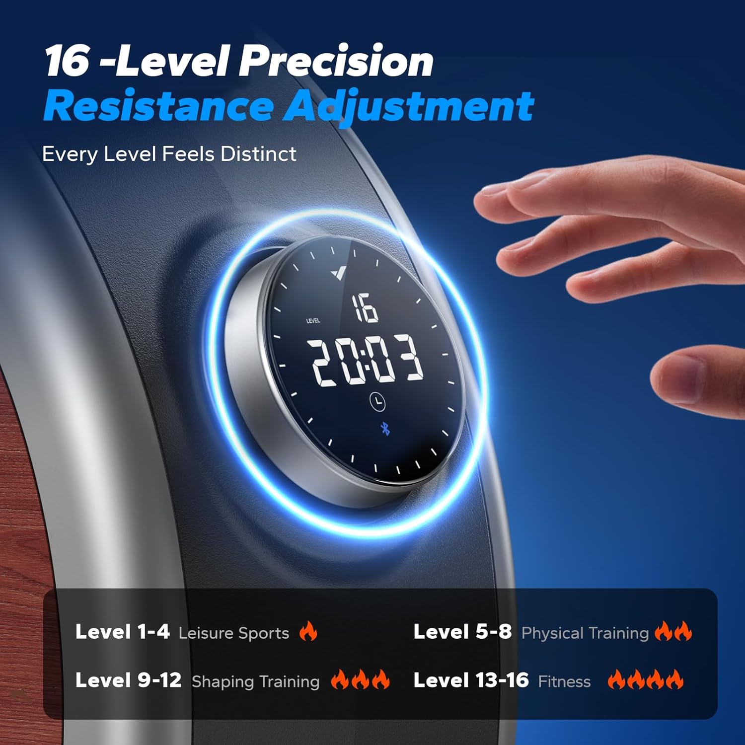 Smart Electronic Control: Precisely manage 16 levels of electromagnetic resistance with a simple twist. Pull to start, and enjoy automatic resistance adjustment via the MERACH app, freeing your hands for an uninterrupted workout.