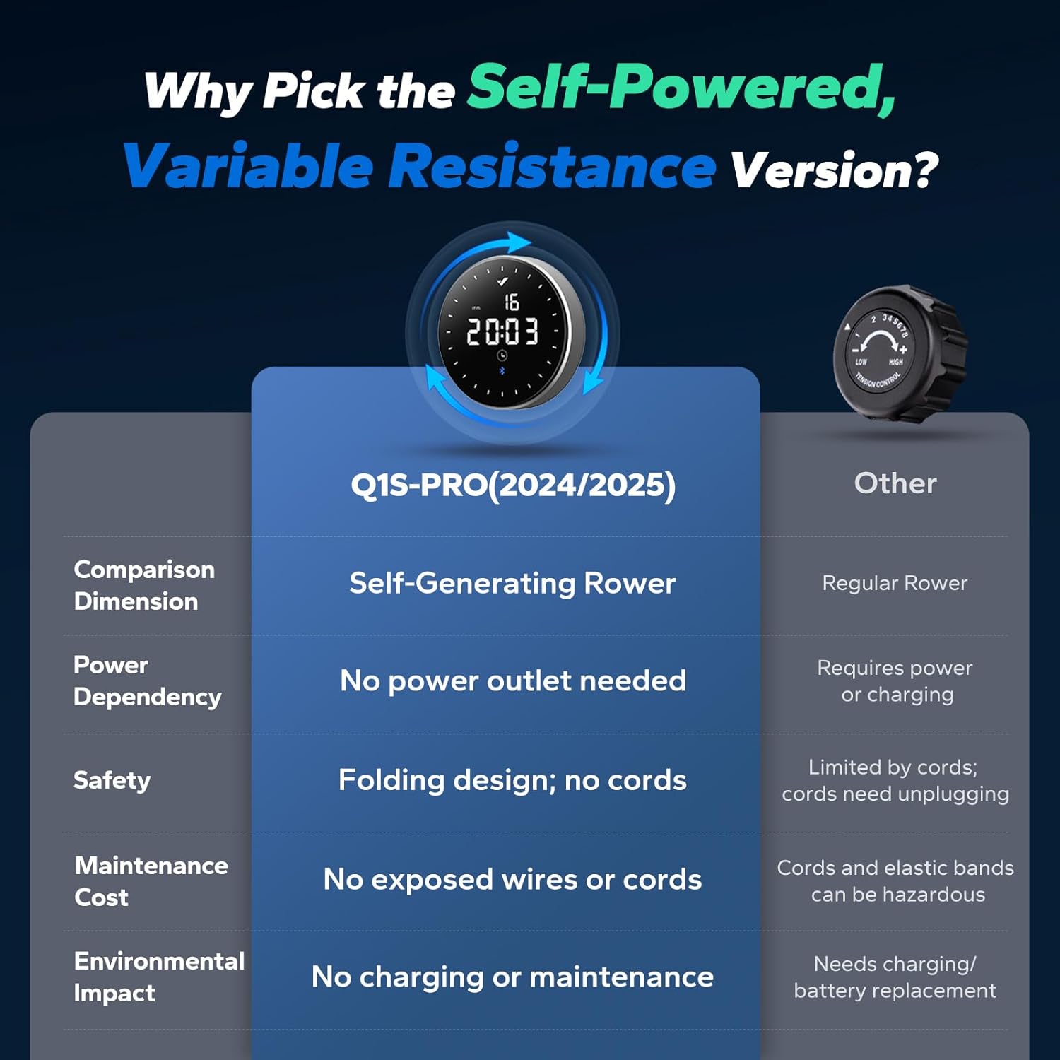 Upgraded Electromagnetic Flywheel 2.0: Self-powered flywheel delivers stable and ample power during workouts. Enjoy smoother and more consistent resistance feedback. Use it anywhereโgarden, garage, or balconyโwithout the hassle of power cords.