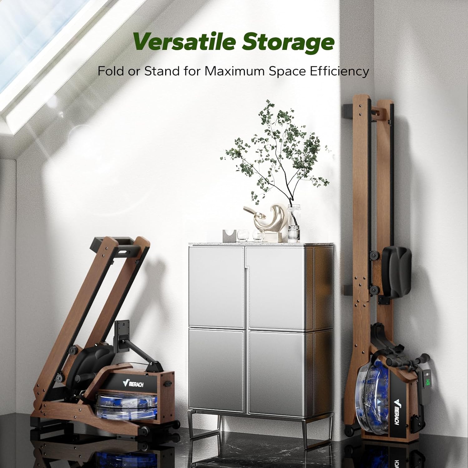 MERACH Water Rowing Machines for Home, Foldable Row Machine with 400LBS Weight Capacity, Dedicated Monitor and Comfortable Seat, Free MERACH App for Immersive Water Rower