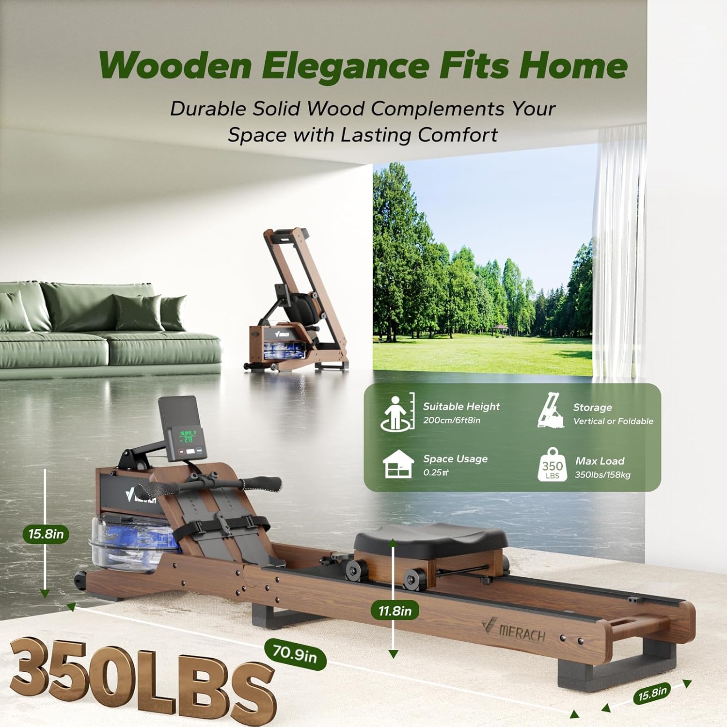 [Premium Solid Wood] Crafted from durable solid wood, this water rowing machine combines natural elegance with lasting strength. Supporting up to 350 lbs and accommodating users up to 6ft8in, it’s perfect for the whole family and an ideal addition to your home gym or indoor rowing setup.
