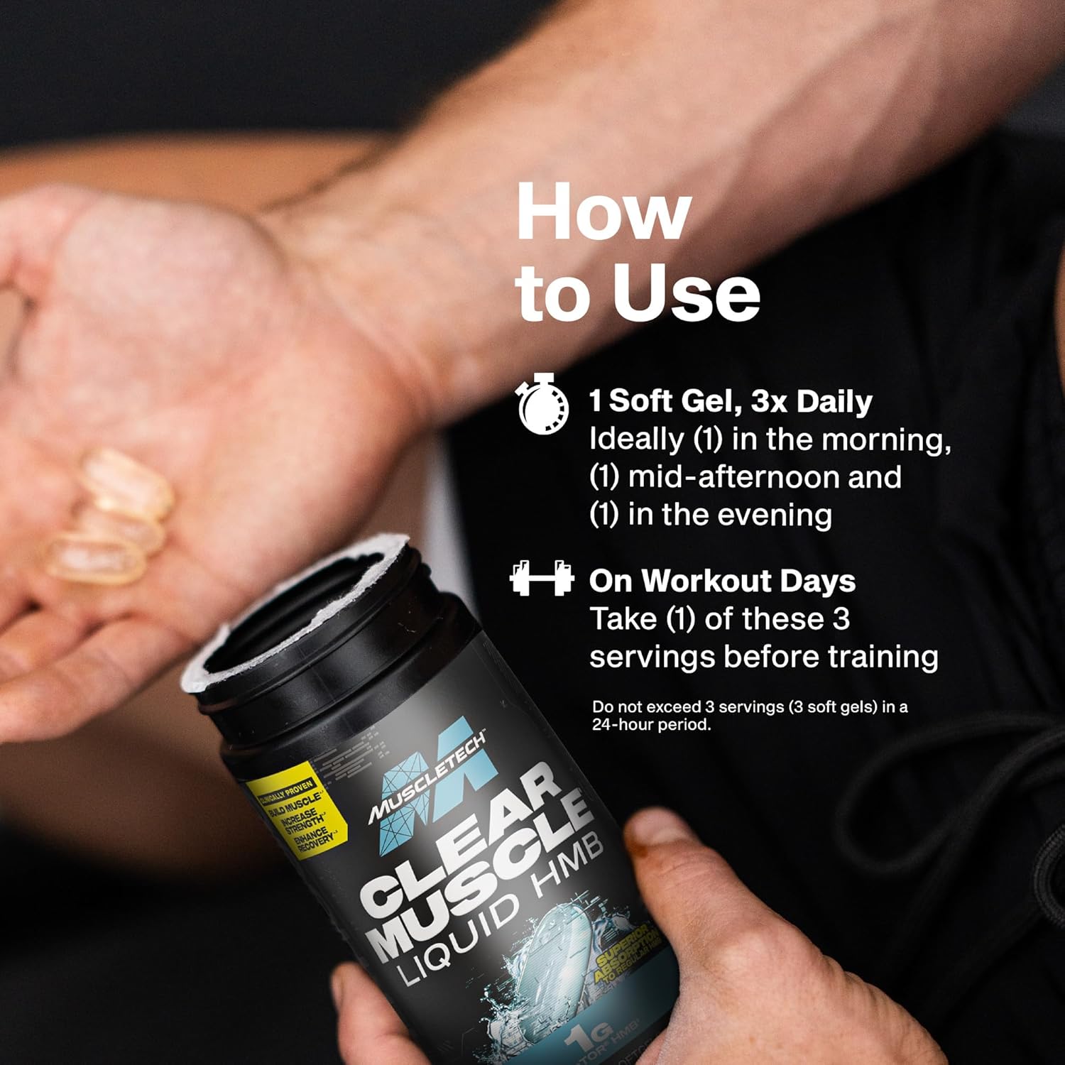 Muscletech HMB Supplements 1000mg, Clear Muscle (42 Liquid Softgels) – Highest Grade HMB for Lean Muscle & Recovery-HMB Free Acid Muscle Supplement-Help Decrease Muscle Breakdown – Packaging May Vary