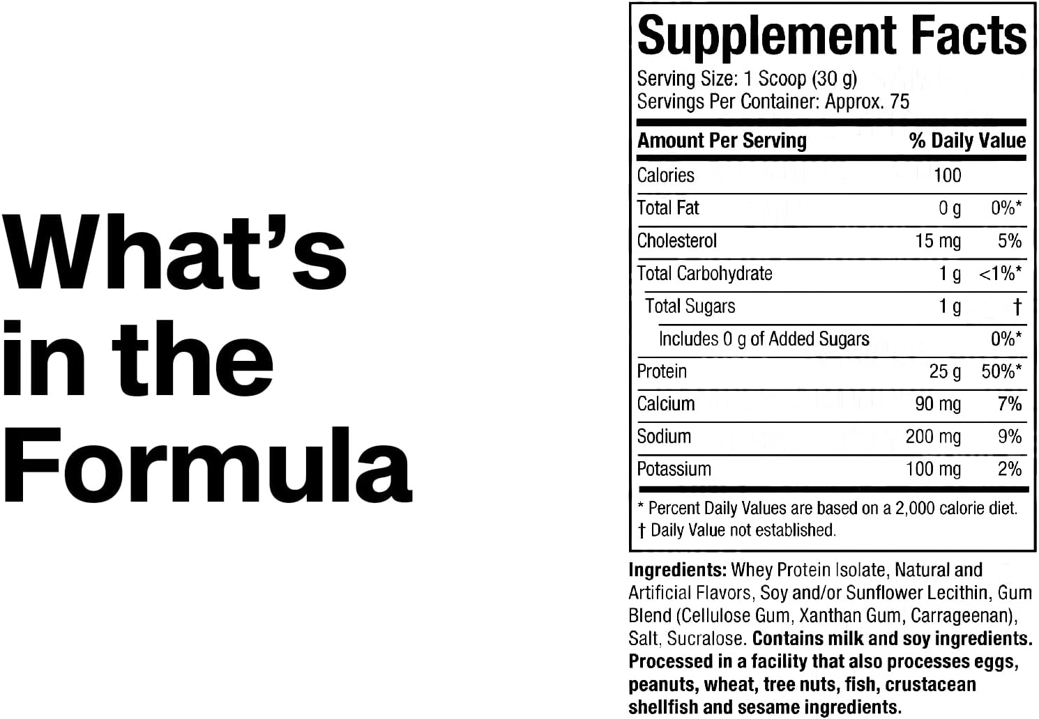 Build Muscle & Support Recovery: Each serving provides 25g of whey protein isolate with 11.2g of EAAs, 5.3g of BCAAs, and made with 0g of sugar to help keep the carbs and calories down for a favorable macronutrient profile.