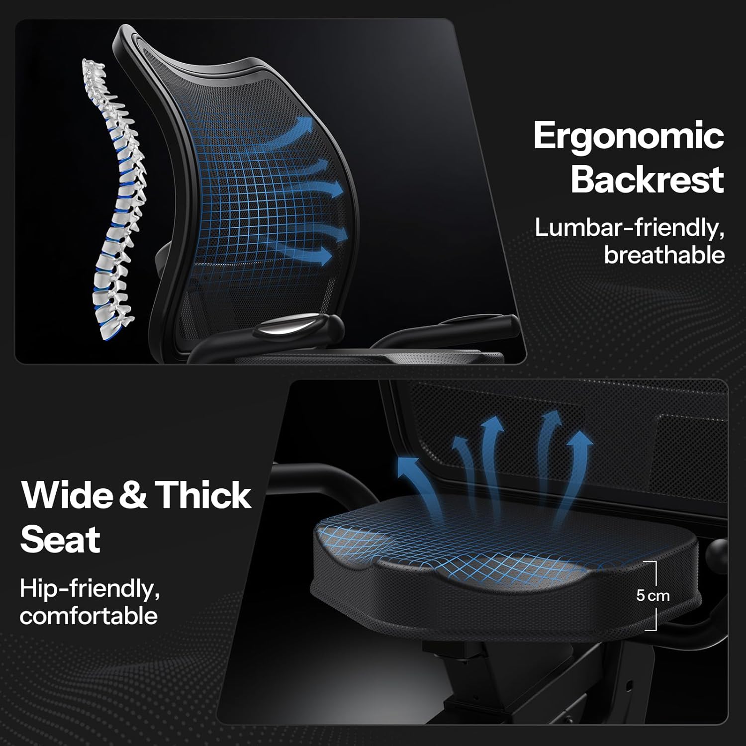 【Ergonomic Seat & Backrest】Niceday prioritizes a 5cm ergonomic high-density soft sponge cushion, and a breathable mesh backrest, deliveing optimal comfort; 8-seat position is really easy to adjust, providing ample legroom to accommodate users height up to 6’3″