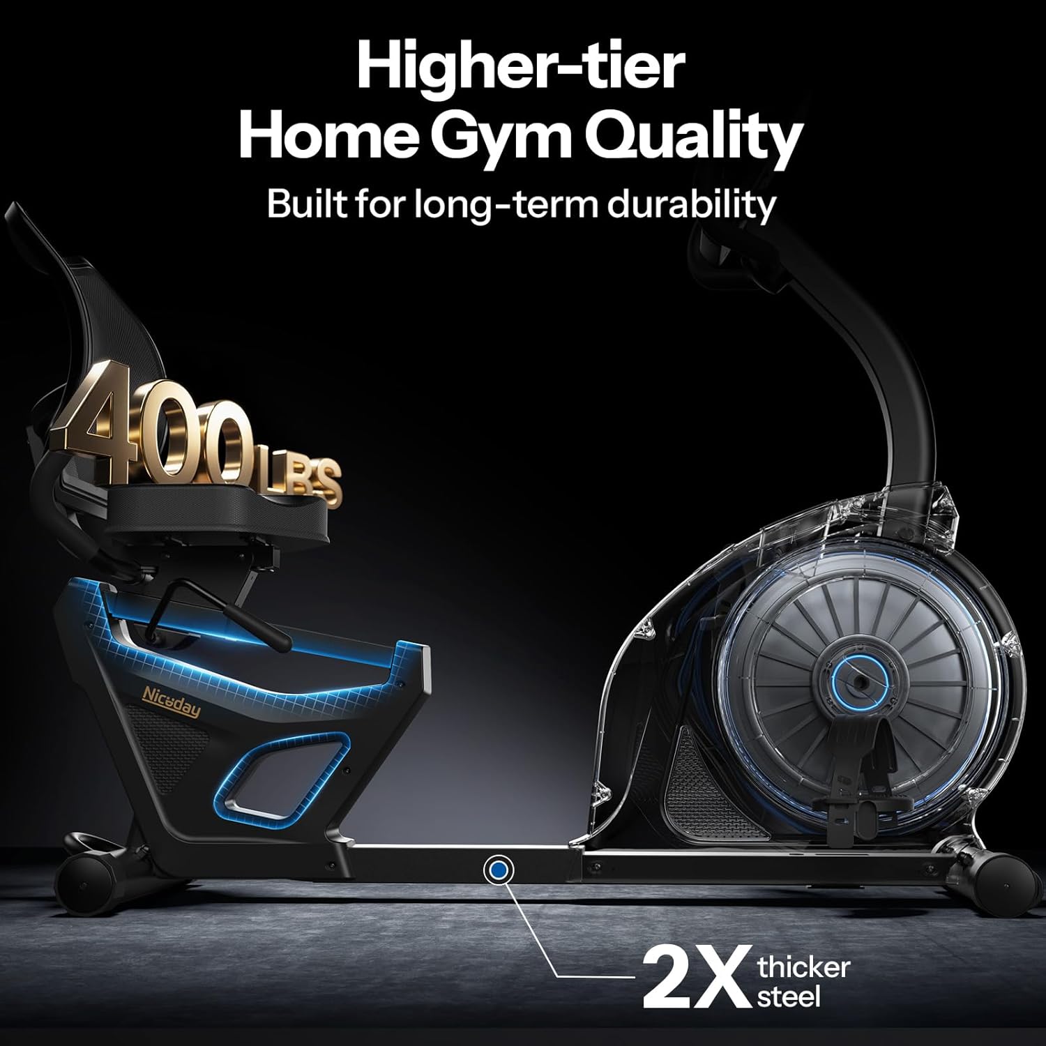 Niceday Recumbent Exercise Bike, Recumbent Bike for Home, Recumbent Stationary Bike 400LBS Weight Capacity, Magnetic Recumbent Bike with Smart APP, LCD Monitor, Heart Rate Handle