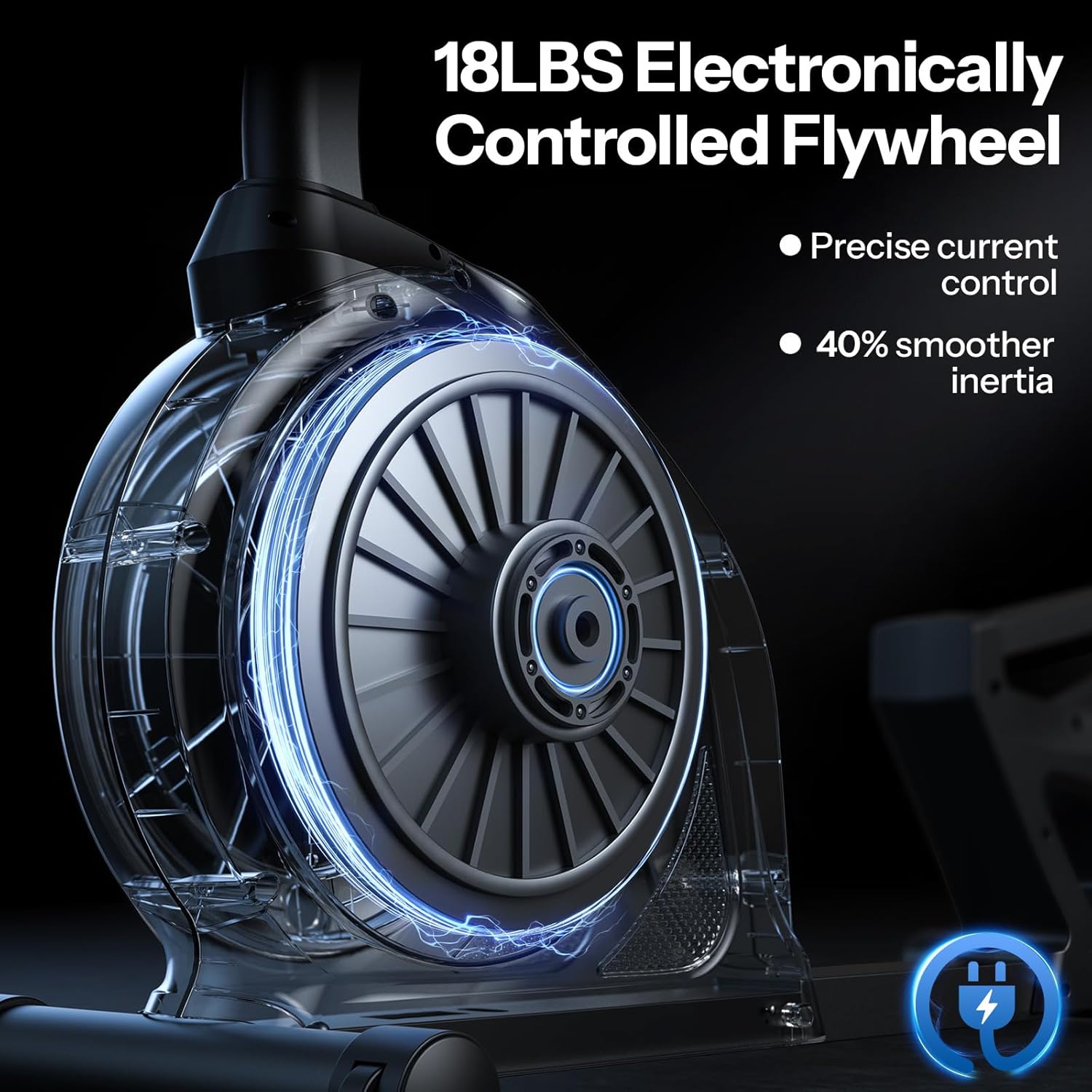 【18LBS Quiet Flywheel】The precisely engineered 18LBS electronically controlled flywheel combined with the magnetic control system, boosting inertia by 40% compared to standard ones; Its whisper-quiet operation ensures no disturbance to family members or neighbors, just enjoy harmonious home fitness