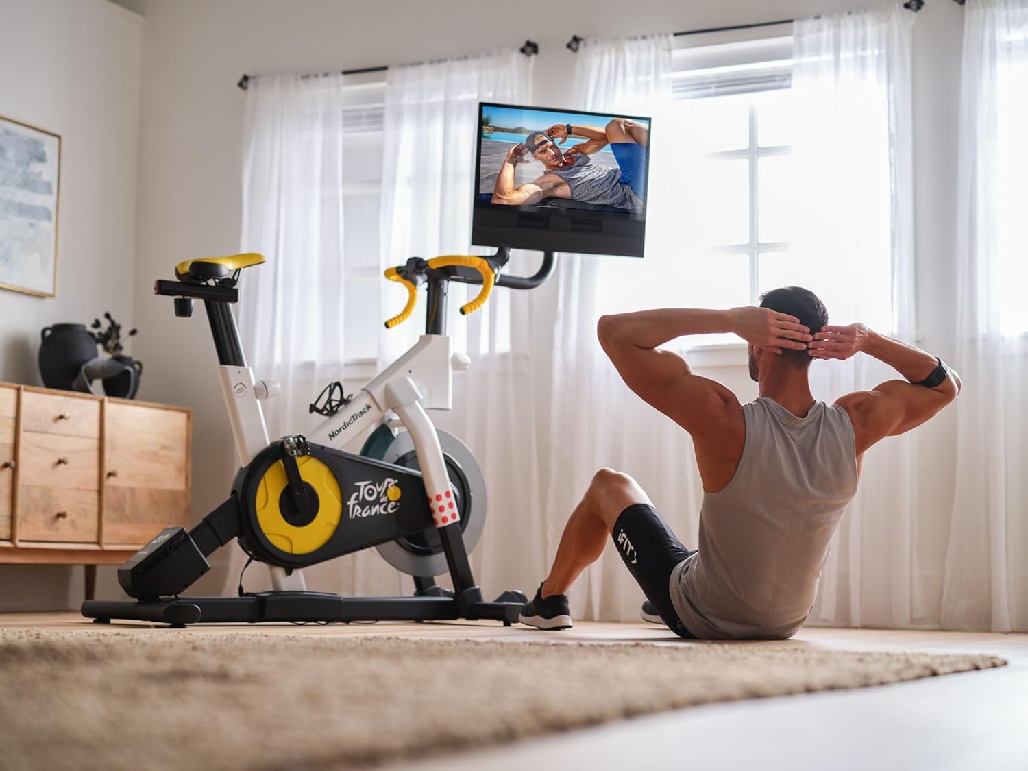 The closest you’ll get to the Tour without leaving home. The NordicTrack Tour de France Indoor Bike and an iFIT Pro Membership boast smart technology that creates a road-riding experience at home. iFIT automatically adjusts your 20% incline to -10% decline range and applies the corresponding resistance to match your fitness level, so every ride is personalized to you. Feel like you’re training for the Tour itself with drop handlebars, customizable gears, and a freewheel coast for a realistic road bike experience. iFIT is the world’s largest outdoor workout library, featuring over 10,000 workouts led by professional athletes and trainers. With iFIT, this bike is more than just an indoor bike. It’s an effective personal training tool for real, pro-level results. Kevin Poulton, a professional cycling coach known for his meticulous planning, advanced science-based training, and tailored regimens, designed a one-of-a-kind program that can only be accessed through iFIT. You’ll ride in tandem with a roster of pro cyclists, including Jens Voigt, Nickolas Roche, Bradley Wiggins, Coryn Labeck, and Dani Rowe.