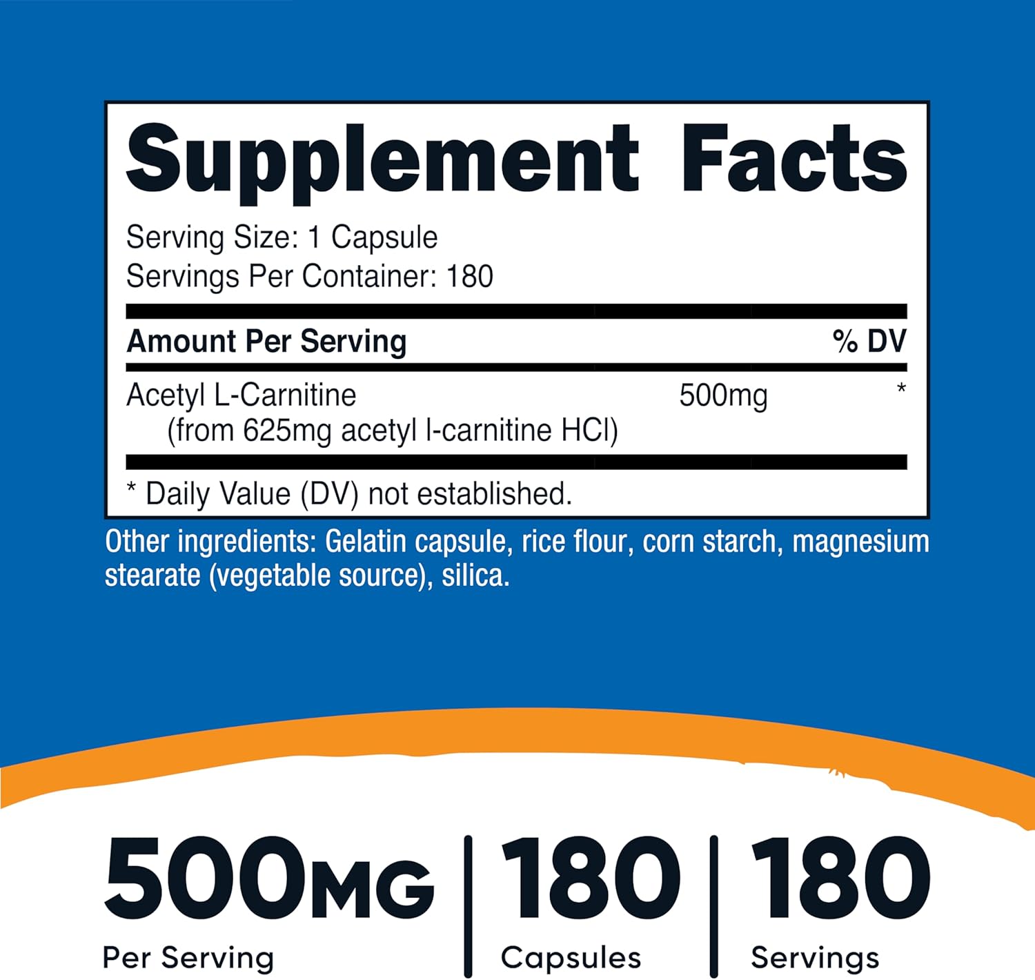 Nutricost Acetyl L-Carnitine (ALCAR) 500mg, 180 Capsules, 180 Servings – Non-GMO and Gluten Free, 1 Capsule per Serving
