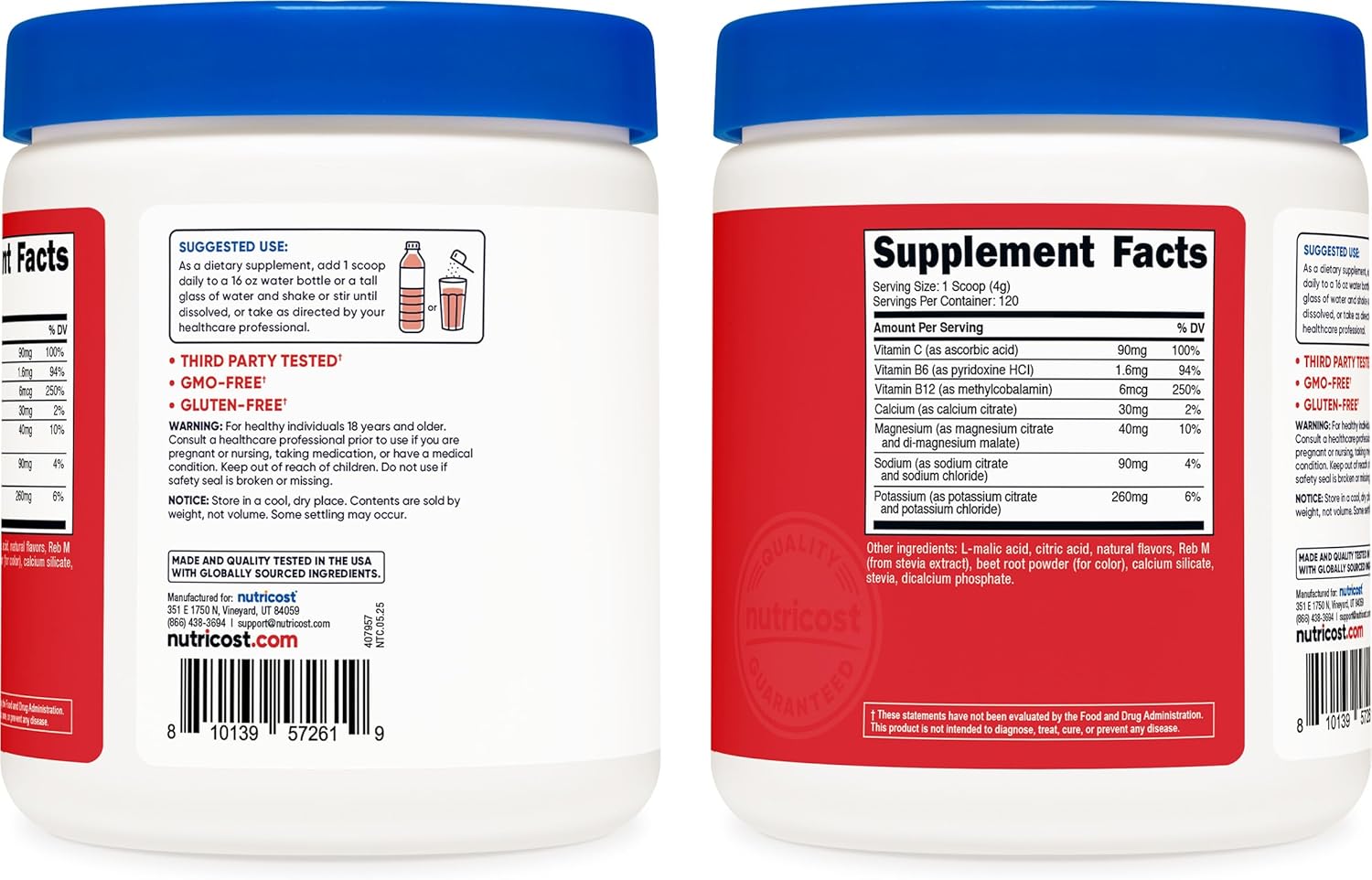 Nutricost Electrolyte Complex Powder (120 Servings, Fruit Punch) – Hydration Supplement Drink Mix with Vitamins and Minerals