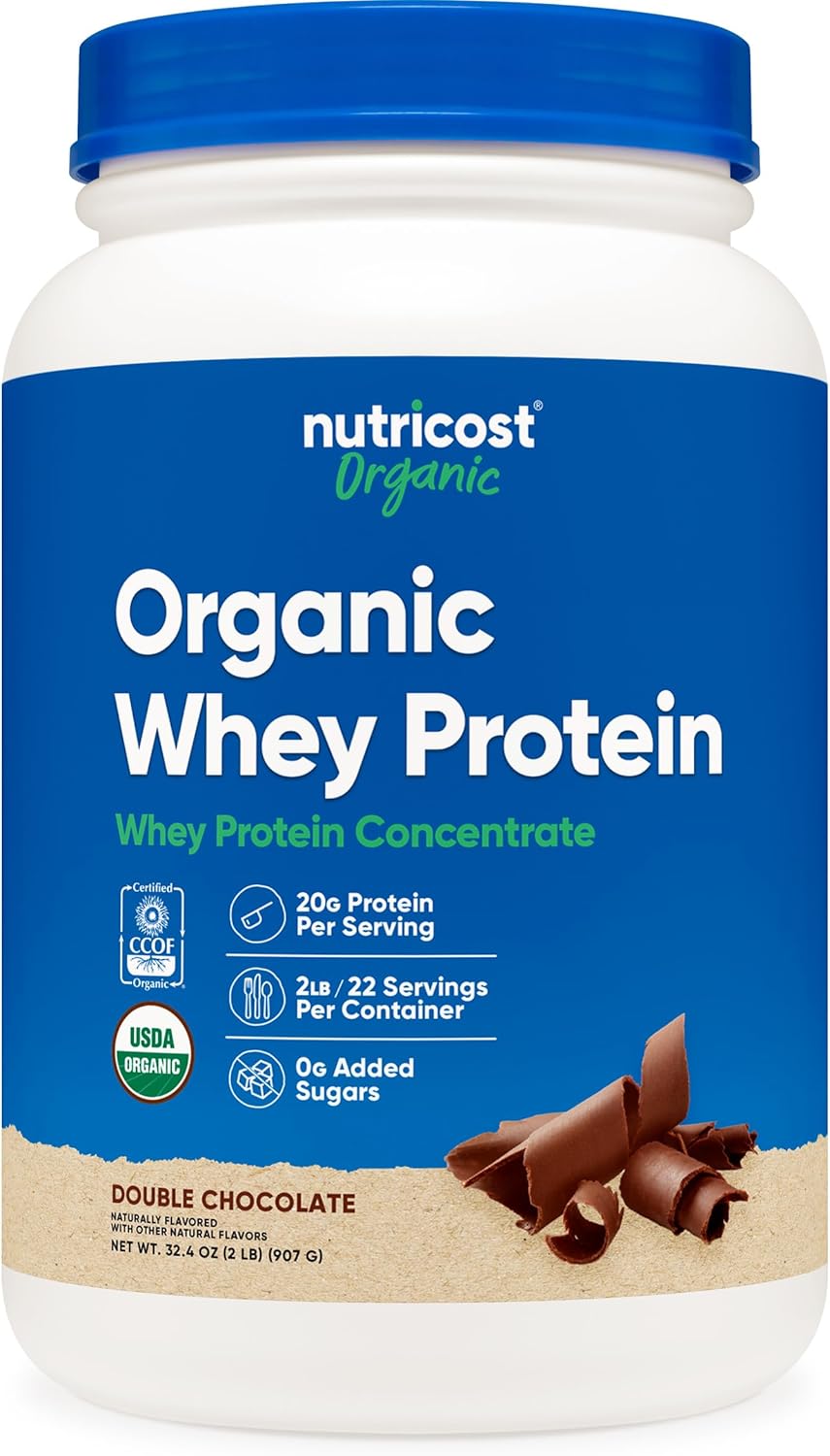Nutricost Organic Whey Protein Concentrate, Double Chocolate Flavored, (2LBS) – Gluten-Free, Non-GMO