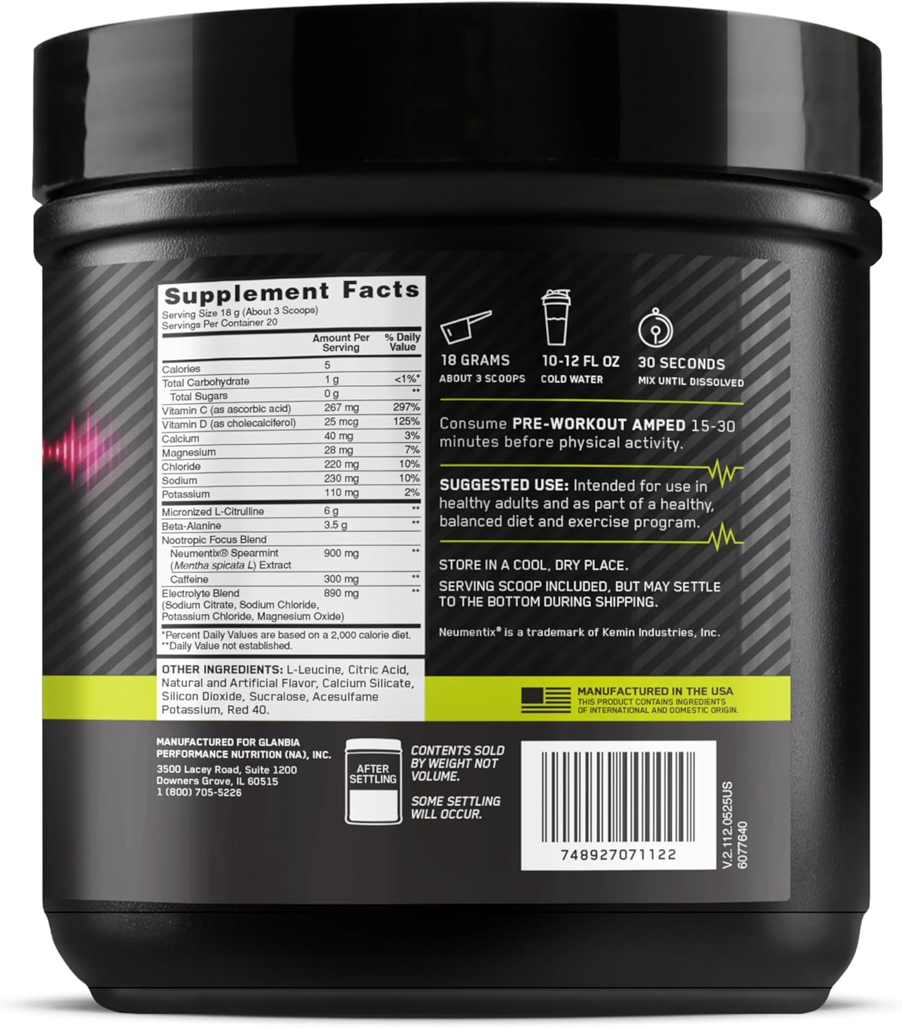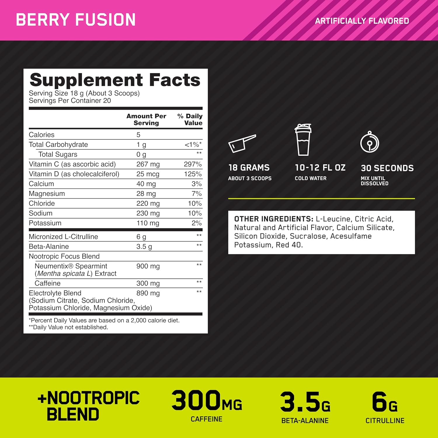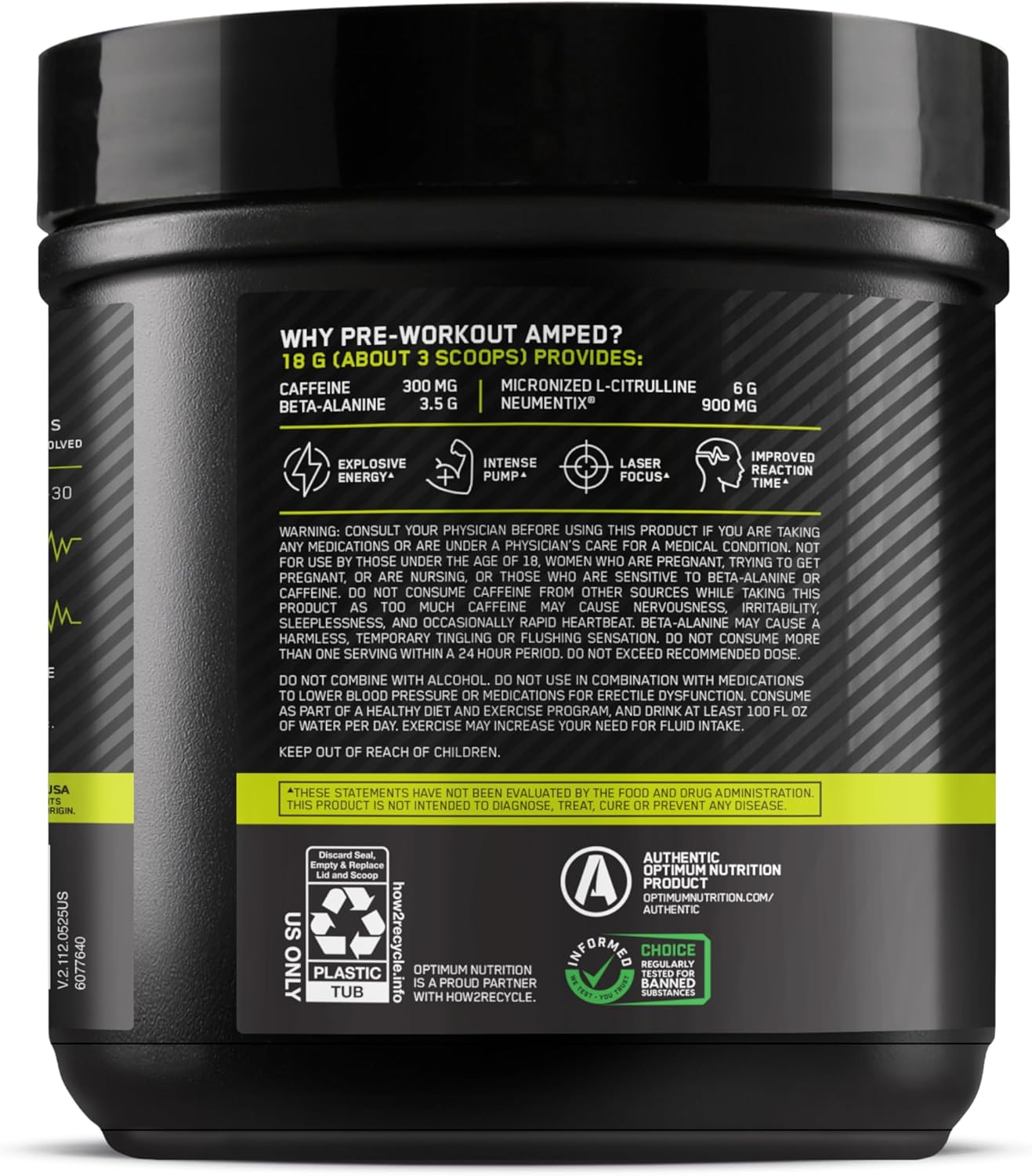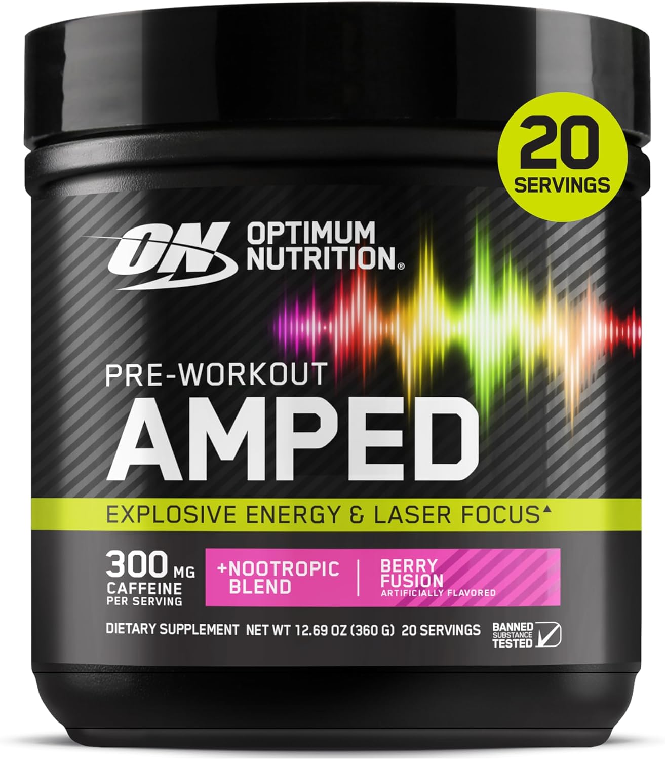 Optimum Nutrition Amped Pre-Workout, with Citrulline, Beta-Alanine, Nootropics and 300mg of Caffeine for Energy, Berry Fusion, 20 Servings (Packaging May Vary)