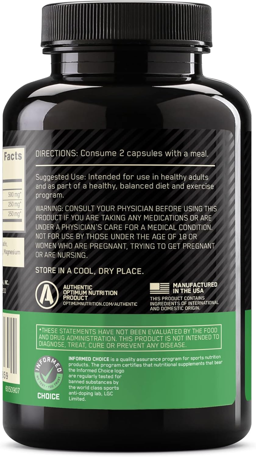 Get essential amino acid support with Optimum Nutrition BCAA Essential Amino Acids Capsules. The amino acid supplement capsules help to augment your daily intake of amino acids, as each 2-capsule serving contains a 2:1:1 ratio of Leucine to Isoleucine and Valine. Each bottle contains a 30-serving supply of Optimum Nutrition BCAA capsules. Use the easy to swallow capsules first thing in the morning or in the 30 minutes before or immediately after training. Take the branched chain amino acids with your favorite beverage or protein shake. There’s more of you in you. Optimum Nutrition has been trusted to provide high quality in post-workout recovery, pre-workout energy, and on-the-go sports nutrition for over 35 years and in 90+ countries.