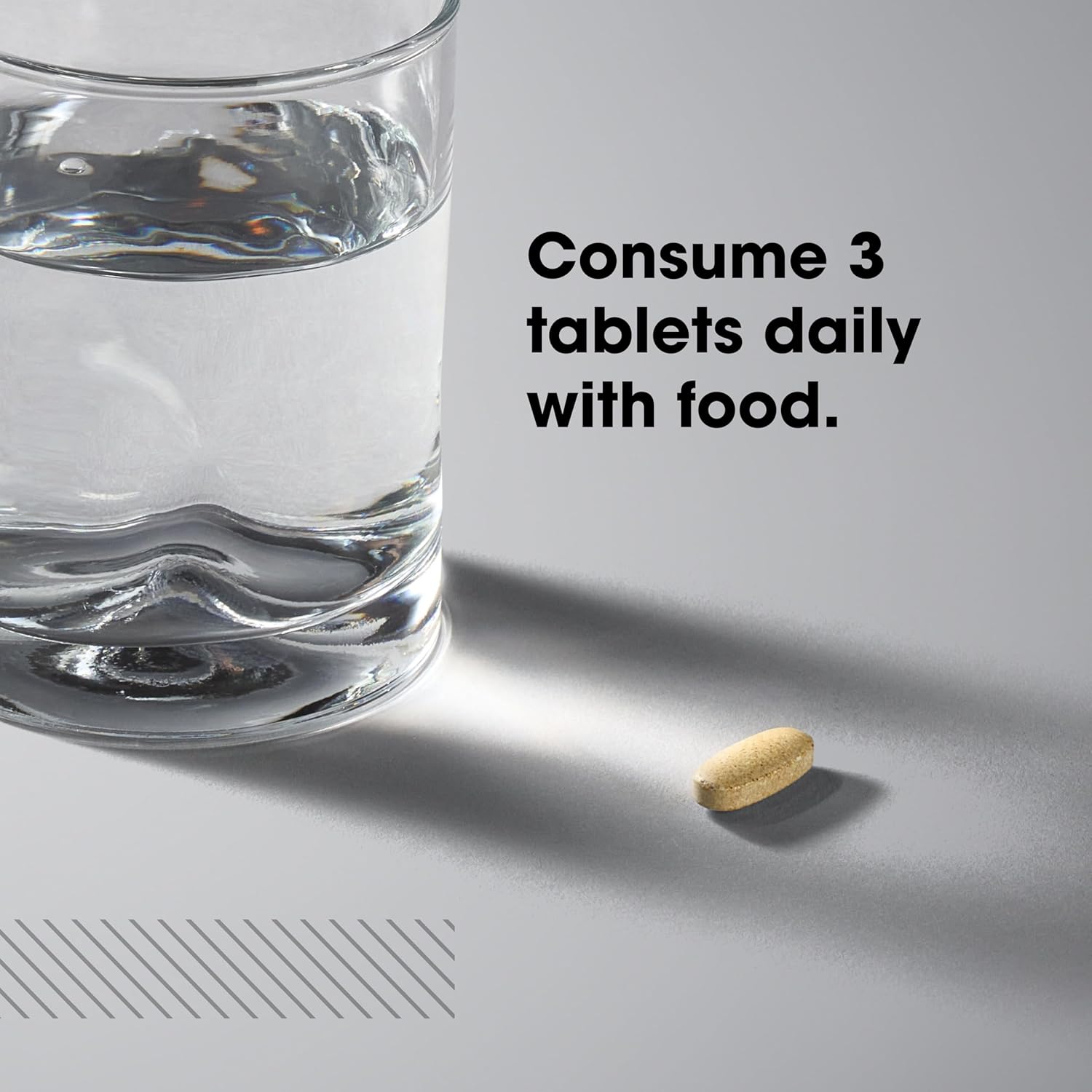 Each 3-tablet serving of Optimum Nutrition Opti-Men daily multivitamin can be taken all at one meal or spread across meals throughout the day