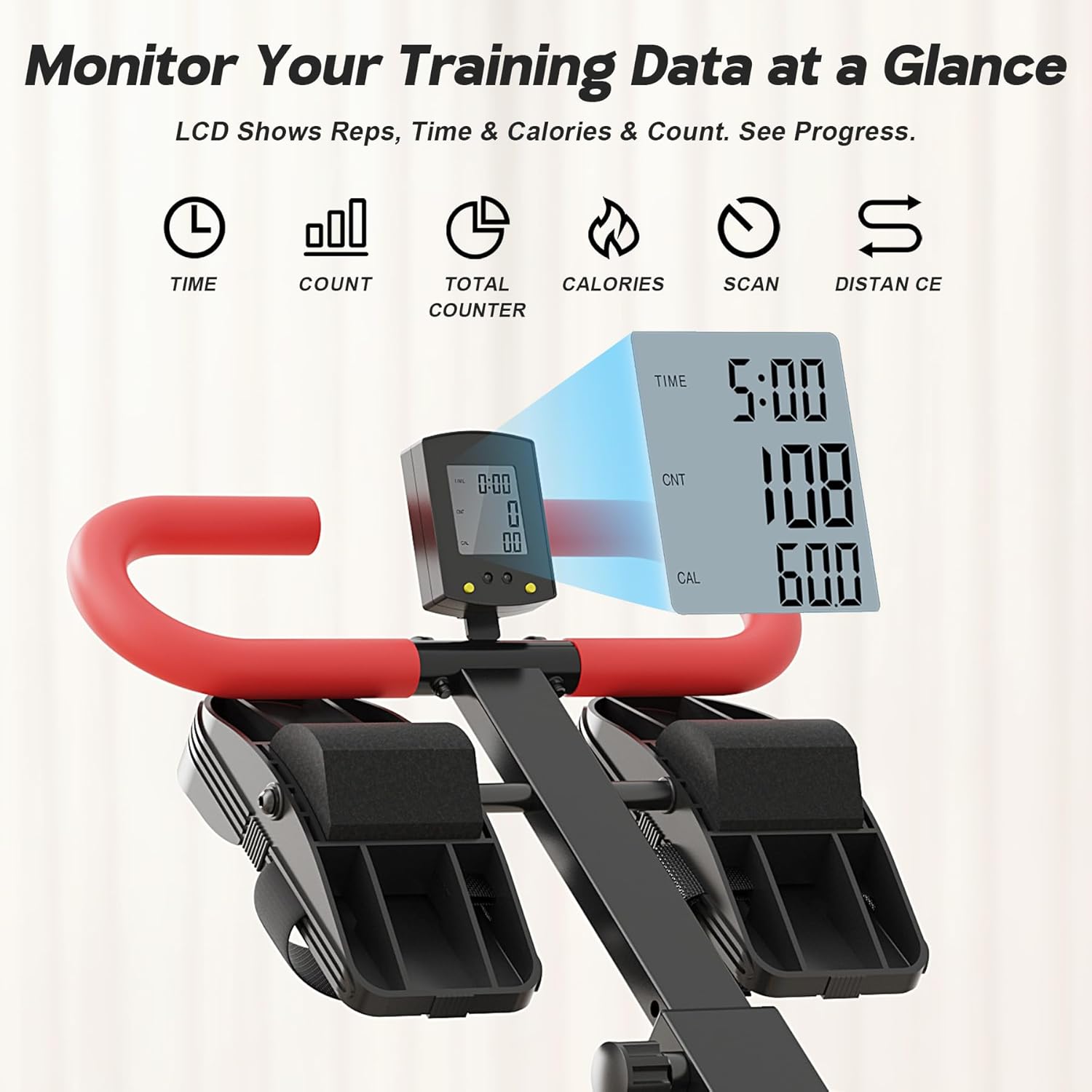 [Real-Time Progress Dashboard] Track every stroke with precision as your home rowing machine’s LCD display scans and records key metrics: distance, time, calories burned, stroke count, and total sessions. Monitor your evolving fitness journey in real-time – turning data into daily motivation.