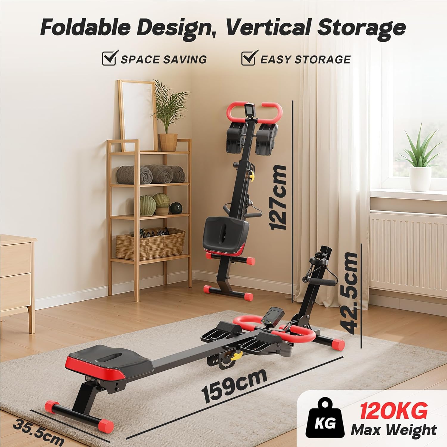 [Quick Installation & Foldable Storage] Transform any corner into a home gym instantly! Your rowing machine arrives 80% pre-assembled – assemble and start training in under 10 minutes. Featuring fold-flat design, these rowing machines for home foldable vanish behind doors or under beds, creating the ultimate space-saving 4-in-1 rowing machine for apartments, balconies, or micro workout nooks.