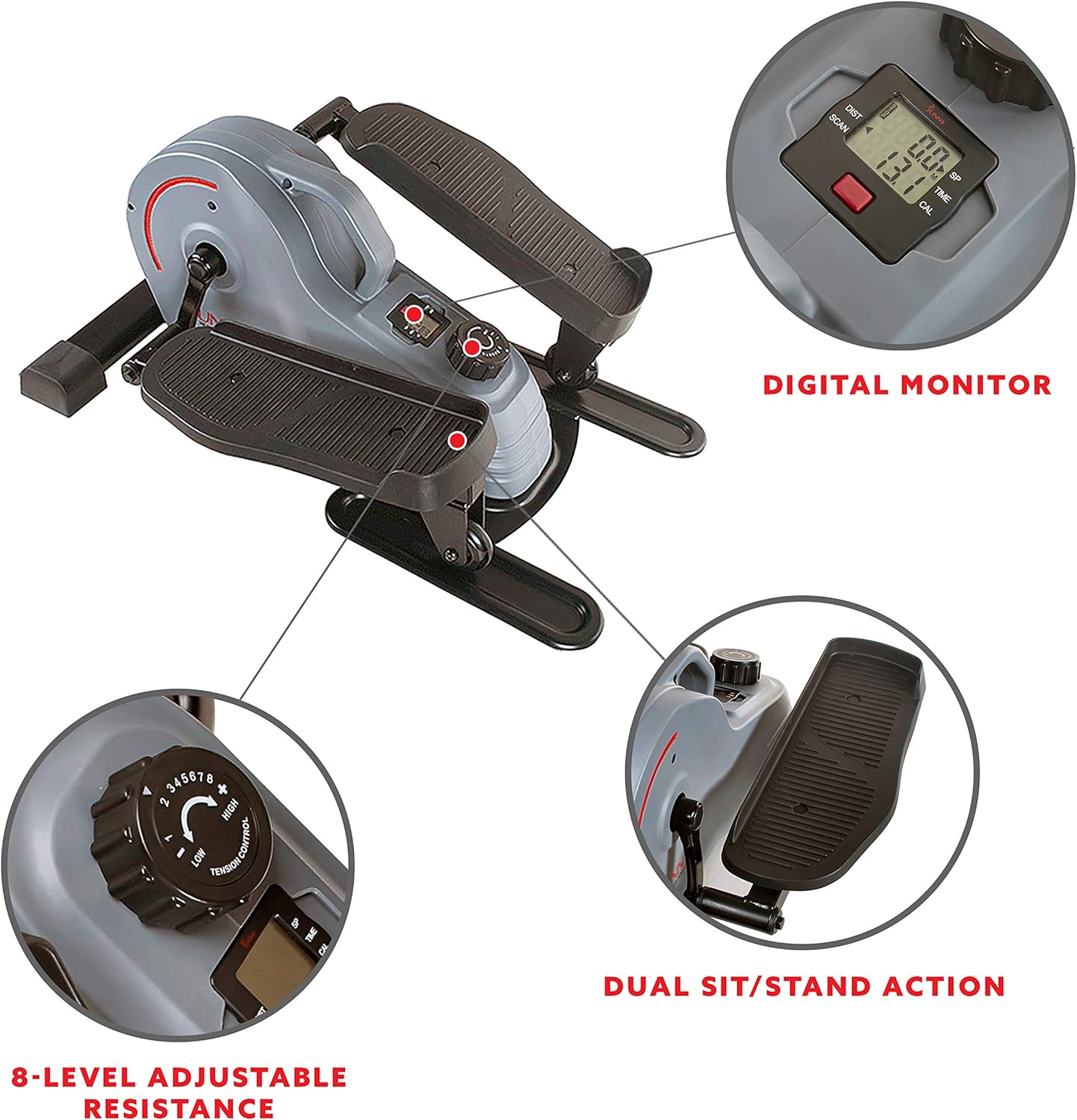 Specification: Sunny Health & Fitness 2-in-1 Sit/Stand Mini Elliptical Machine, Portable Under Desk Peddler Exerciser for Senior Home Workout, Optional Free Sunnyfit App Bluetooth Link, Handlebars or Resistance Band