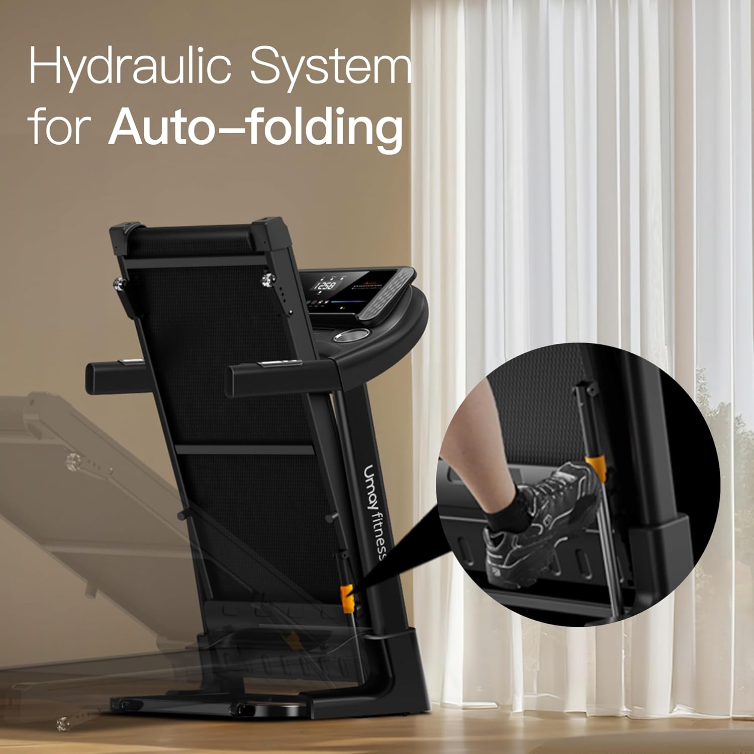 Specification: UMAY Fitness Home Folding Incline Treadmill with Pulse Sensors, 3.0 HP Quiet Brushless, 300 lbs Capacity (Black or Gray)