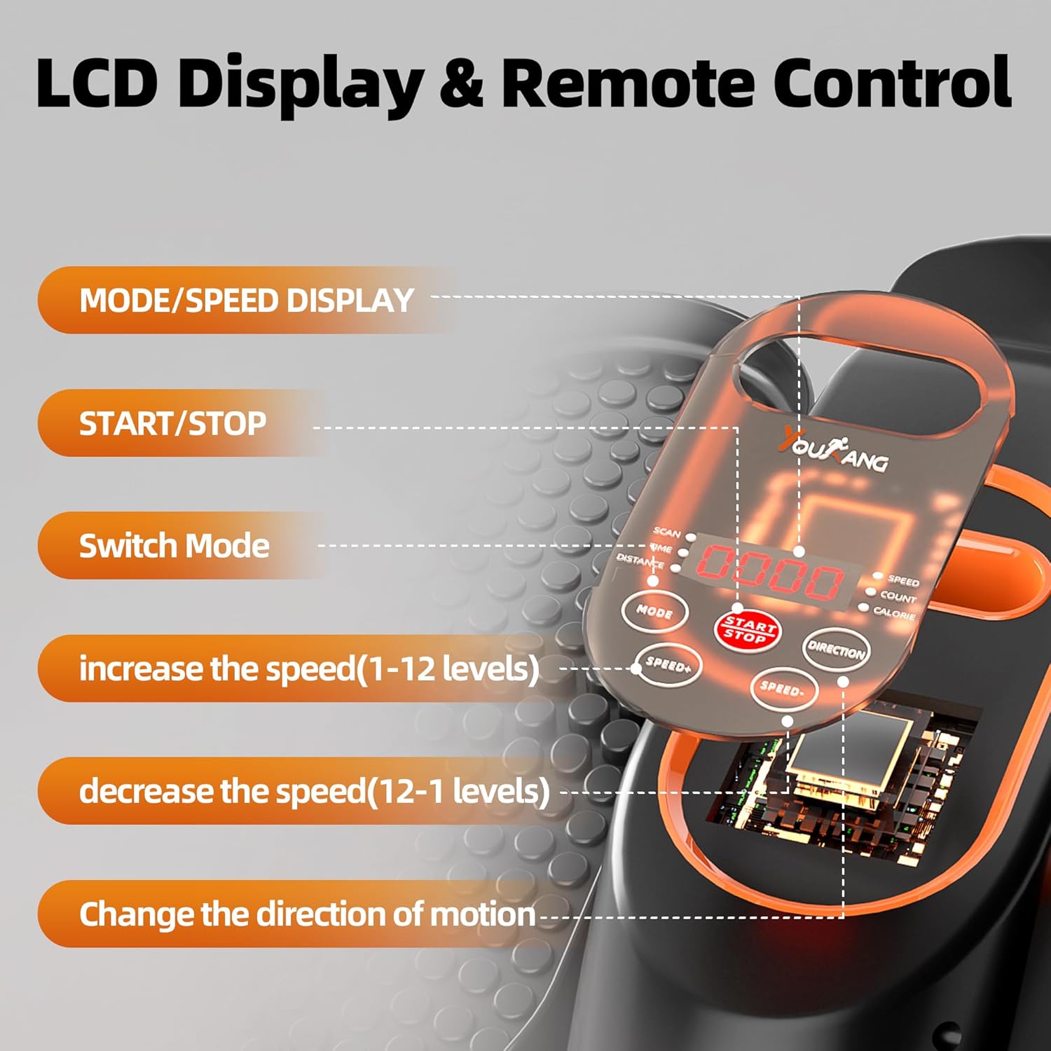 Specification: Under Desk Elliptical Machine with Smart Safety Stop – Electric & Quiet 12dB Seated Elliptical for Seniors, 12-Level Auto/Manual Modes with Remote for Home Office Rehab