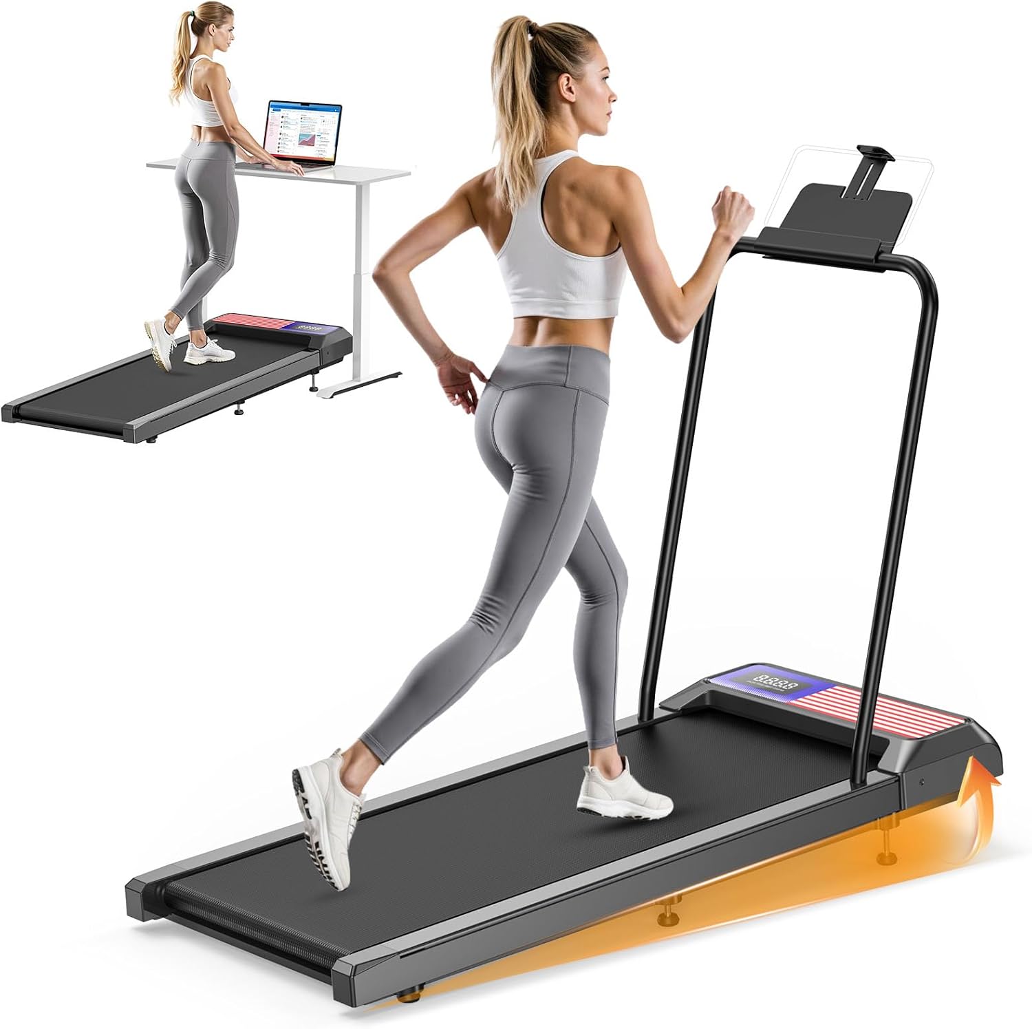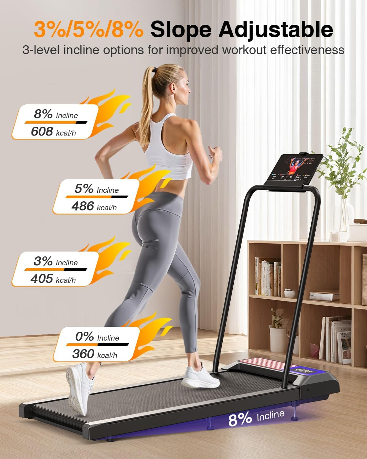 【Upgrade 8% Incline 】Burn 200+ extra calories per hour with this treadmill with handle bar. Perfect for walking, working, or streaming your favorite shows while you exercise.